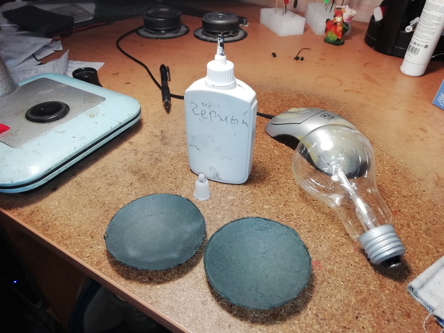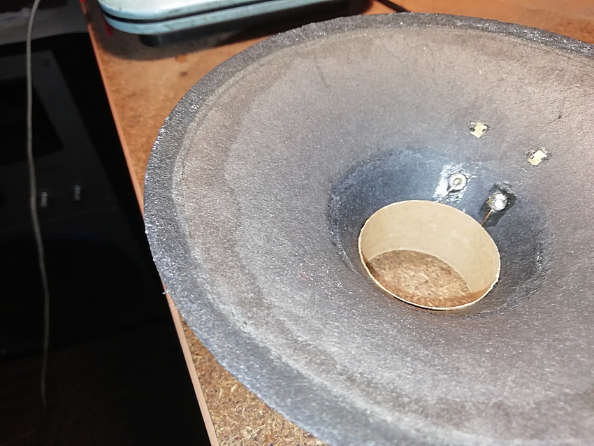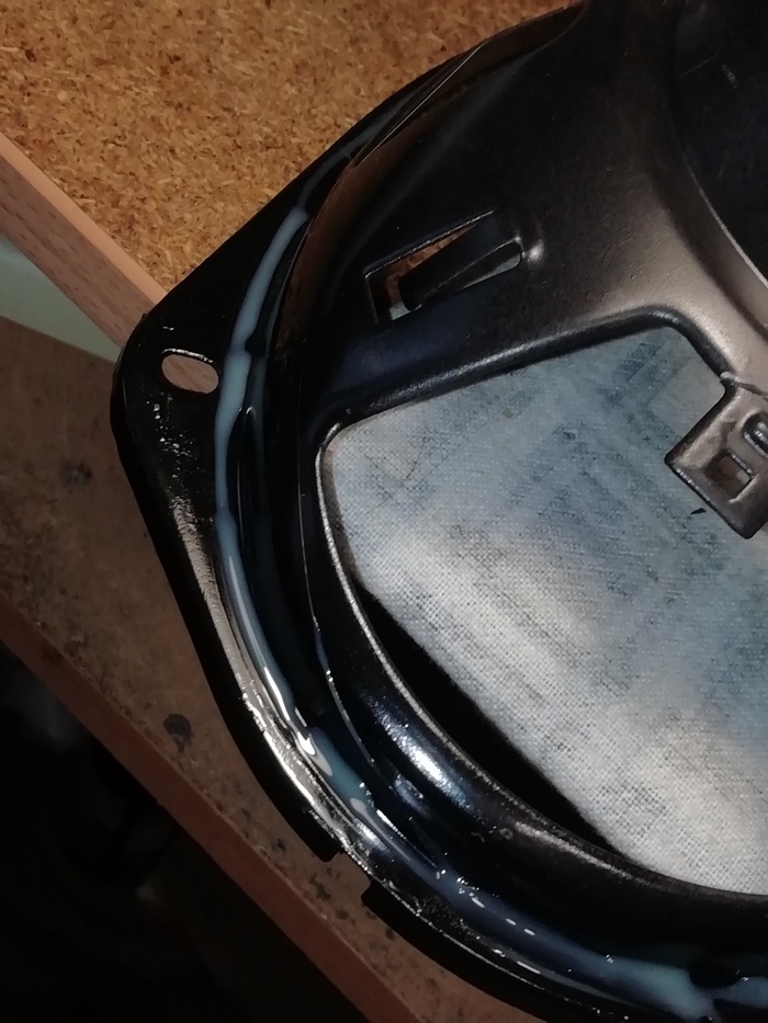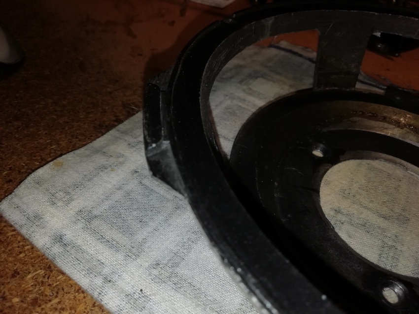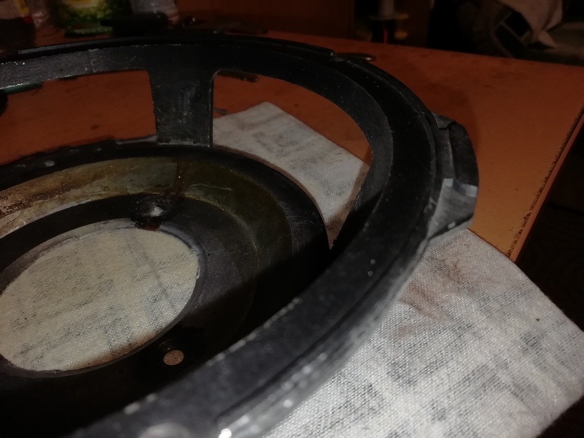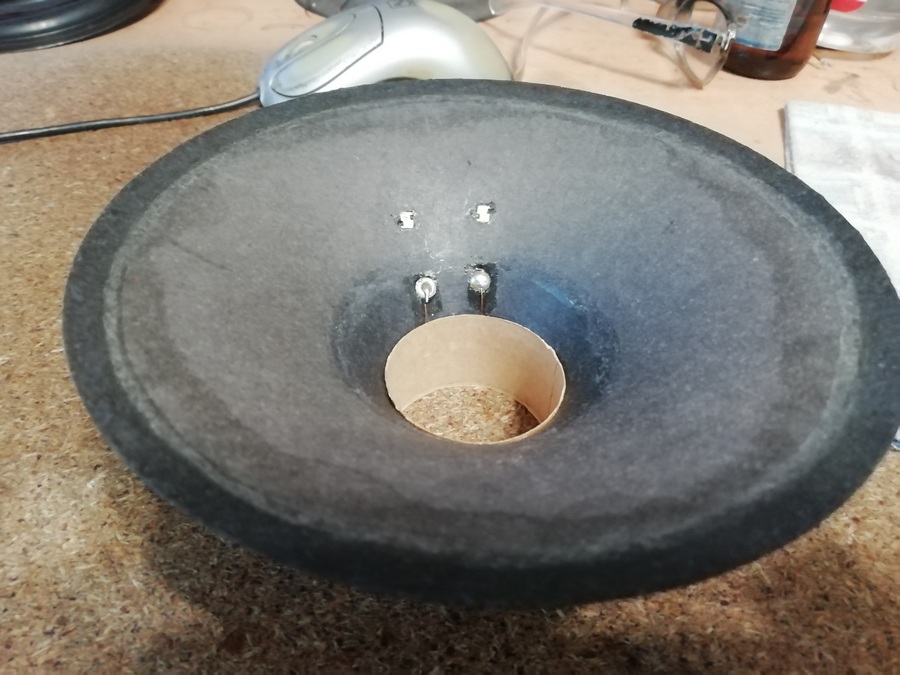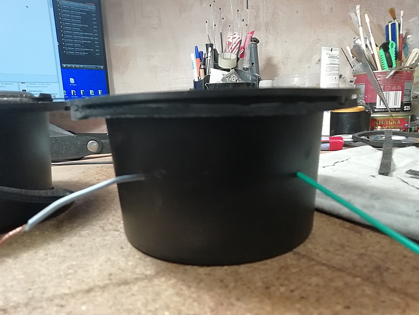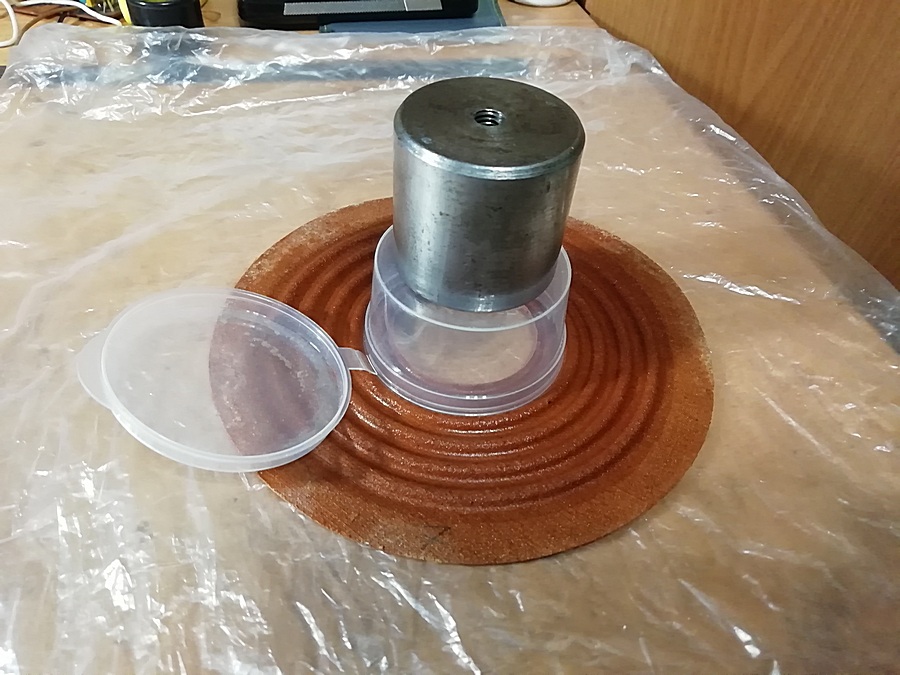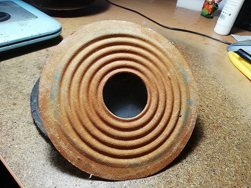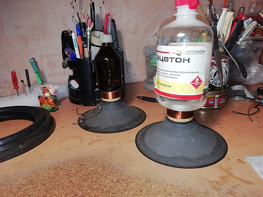 После испарения ацетона с краёв диффузоров - старые швы были промазаны жидким ПВА и высушены под лёгким грузом для фиксации окружности в идеальном состоянии