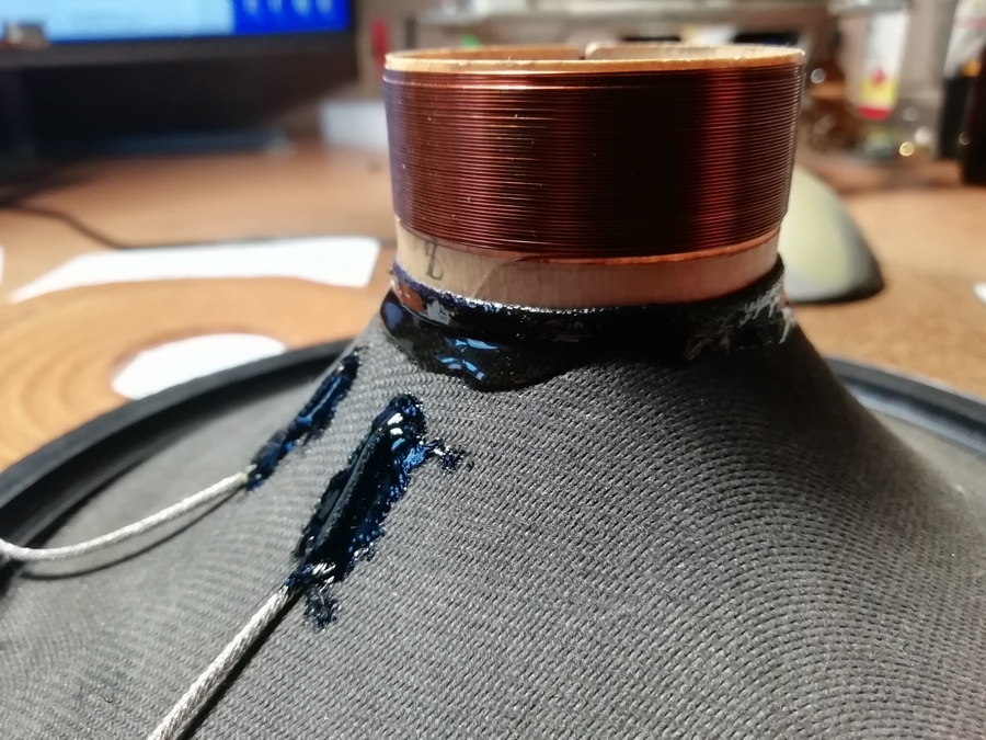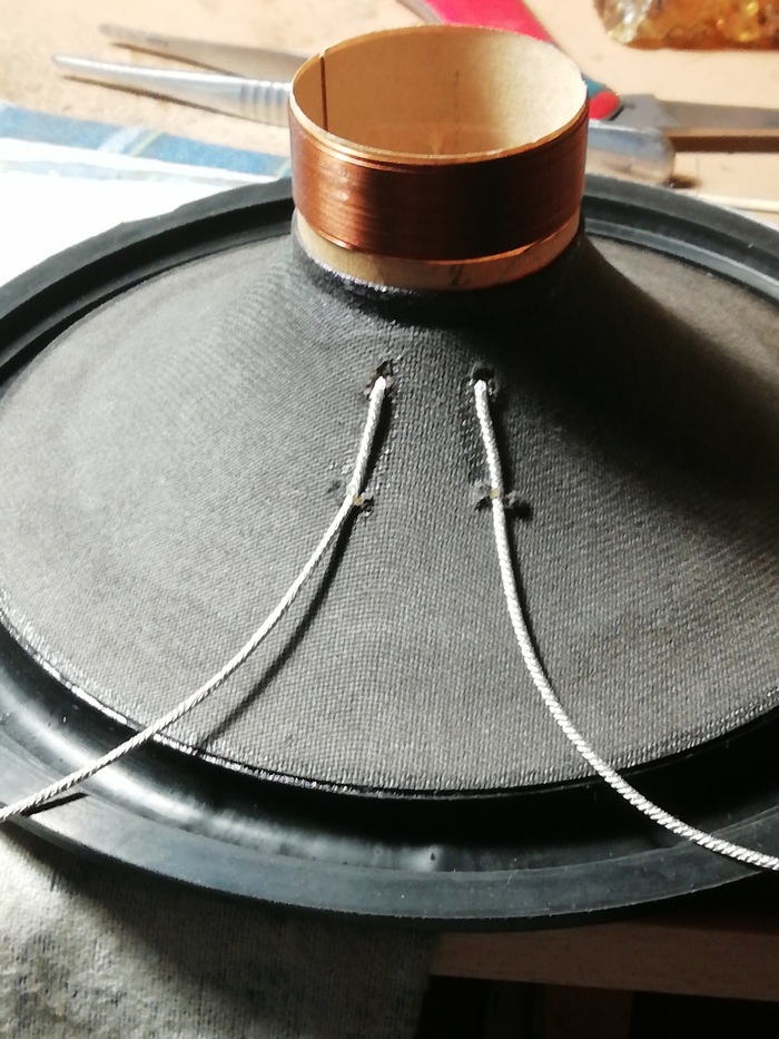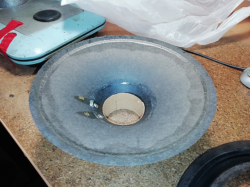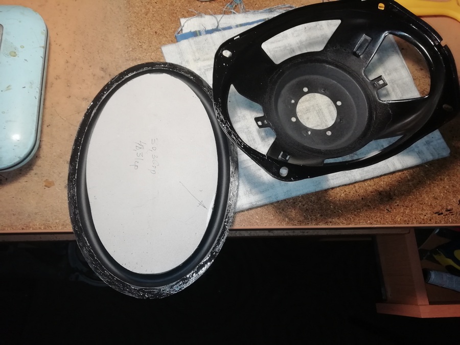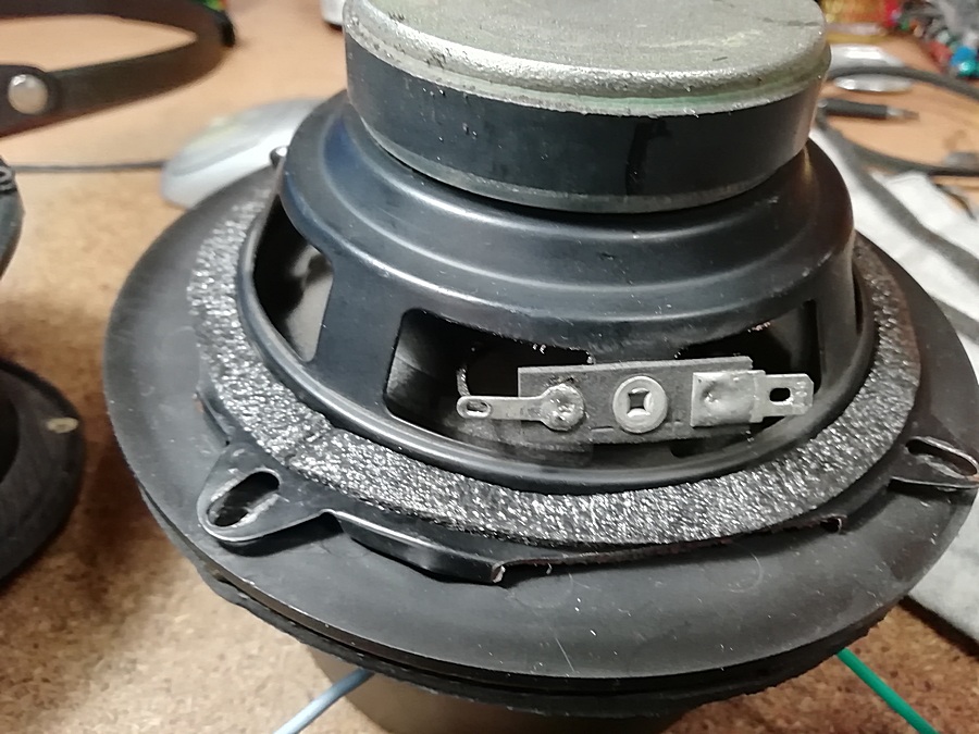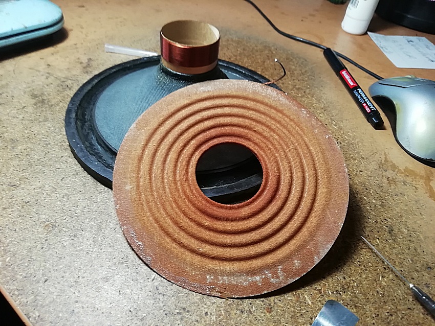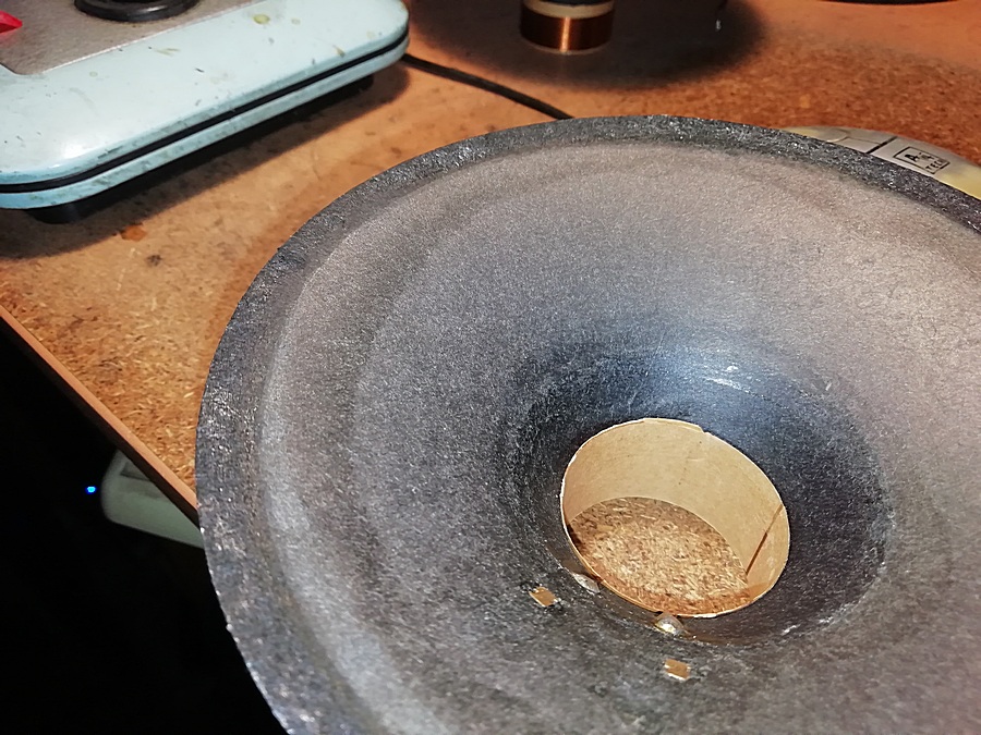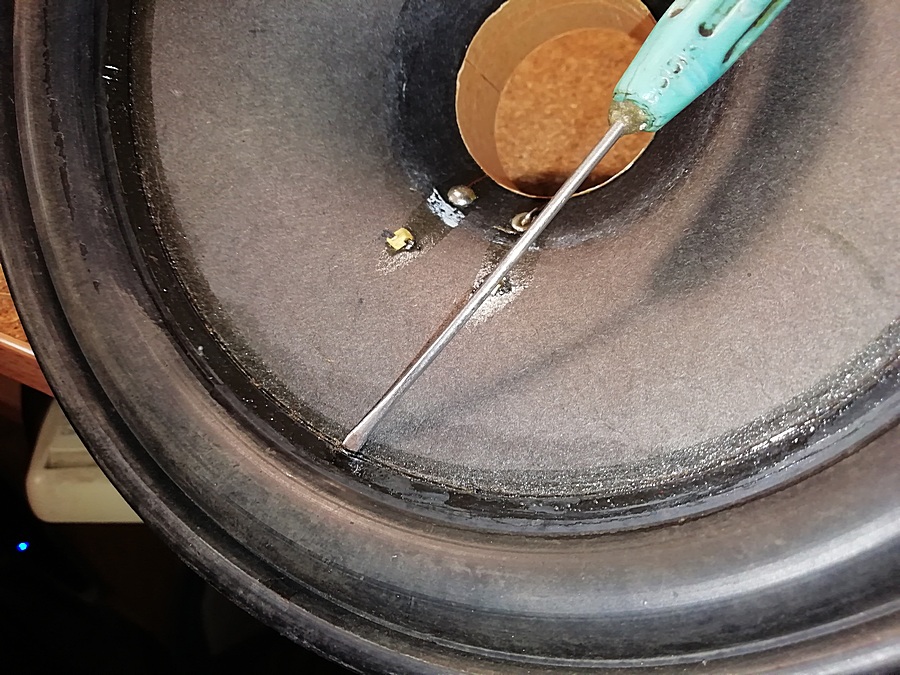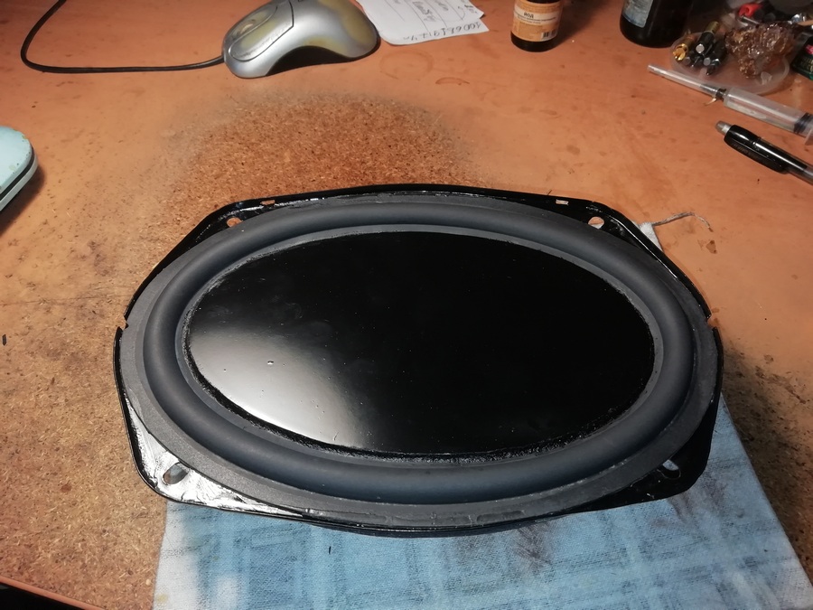 Старые подвесы снял. Многократная и аккуратная пропитка клея у подвеса с обеих его сторон и завёртывание в мягкие пакеты дала результат. Подвесы снялись достаточно легко с минимальными повреждениями диффузоров в виде отсутствия тончайшего, наружного слоя бумаги