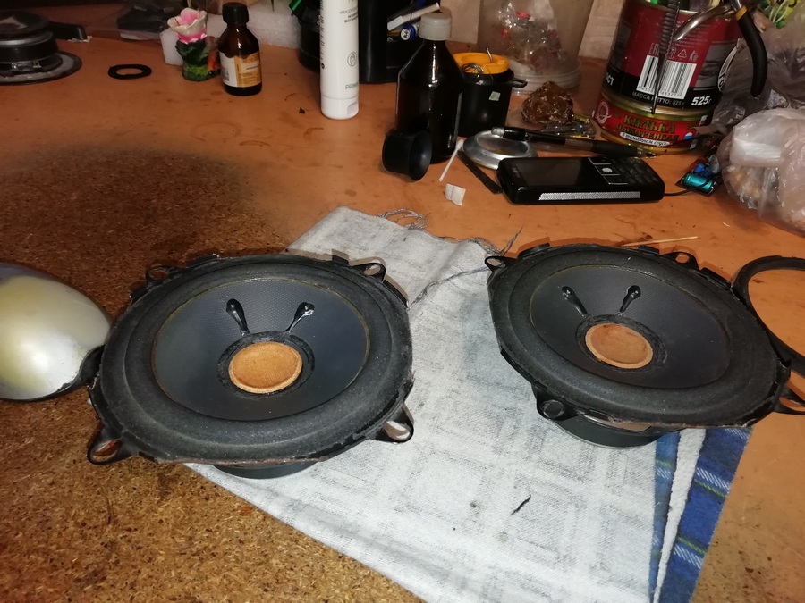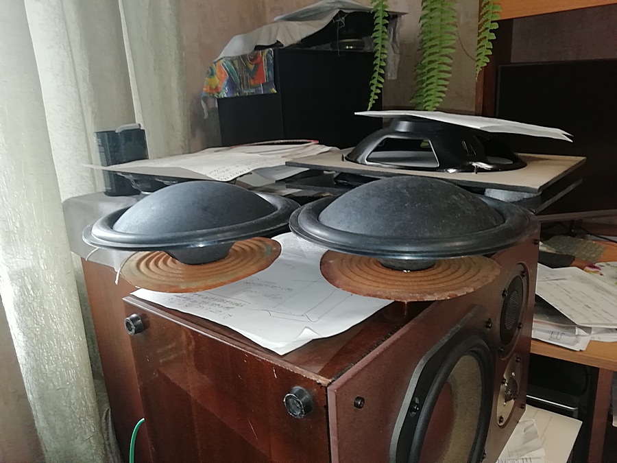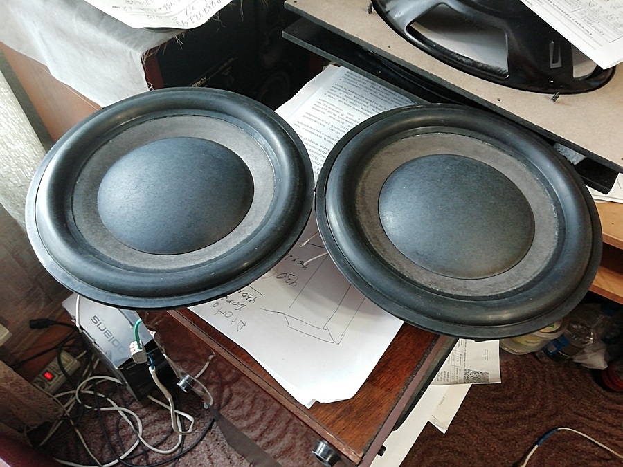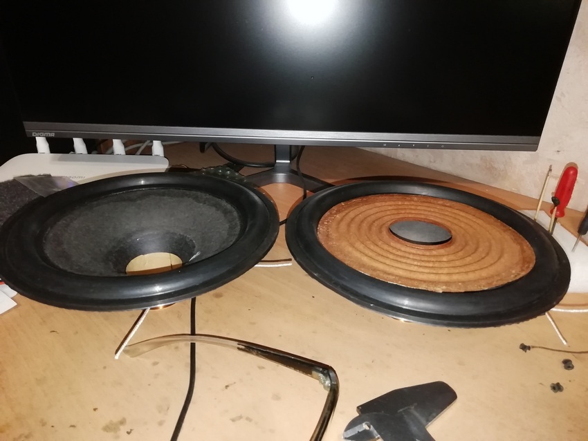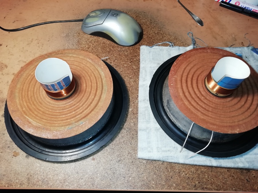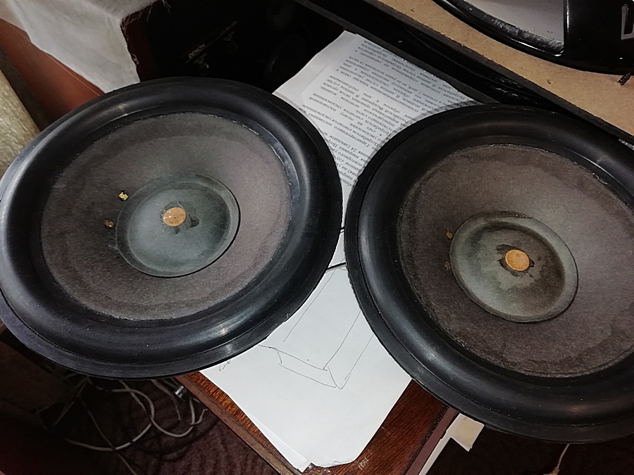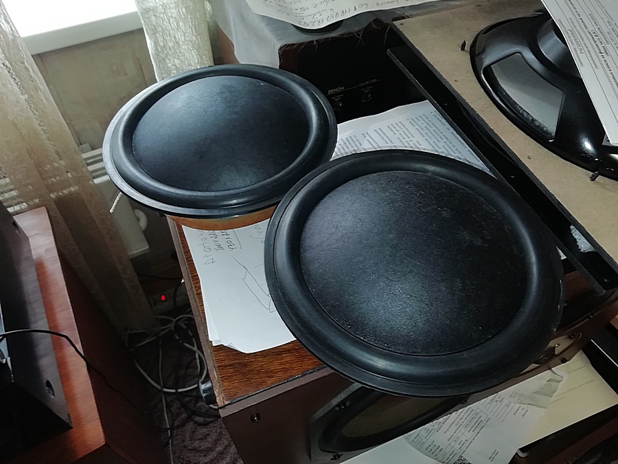 Из всего цветника были выбраны две розы под номерами №7 и №8, которые имели подвесы, но не имели ЦШ и колпаков. ЦШ я видимо снял на 12" Тонсилы когда их апгрейдил для Denon SС-106. Ориентир был на достаточно красивую мордаху диффузоров и одинаковость катушек (хотя если честно, это не фактор). Но свезло так свезло.