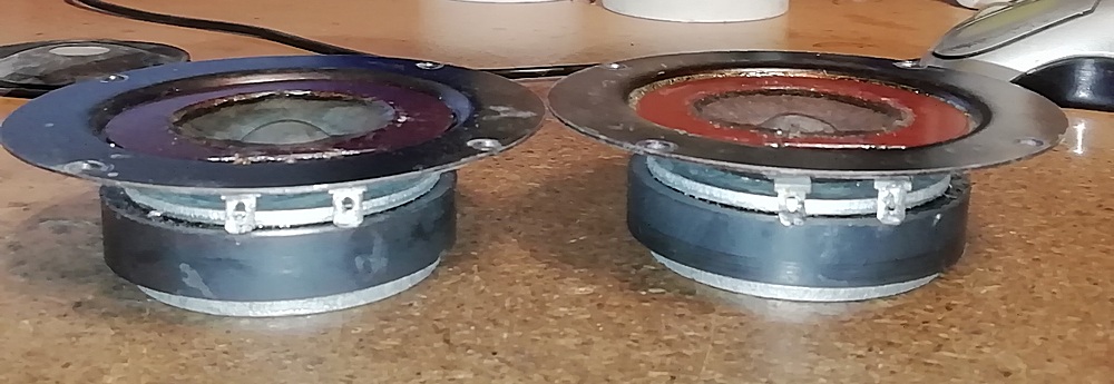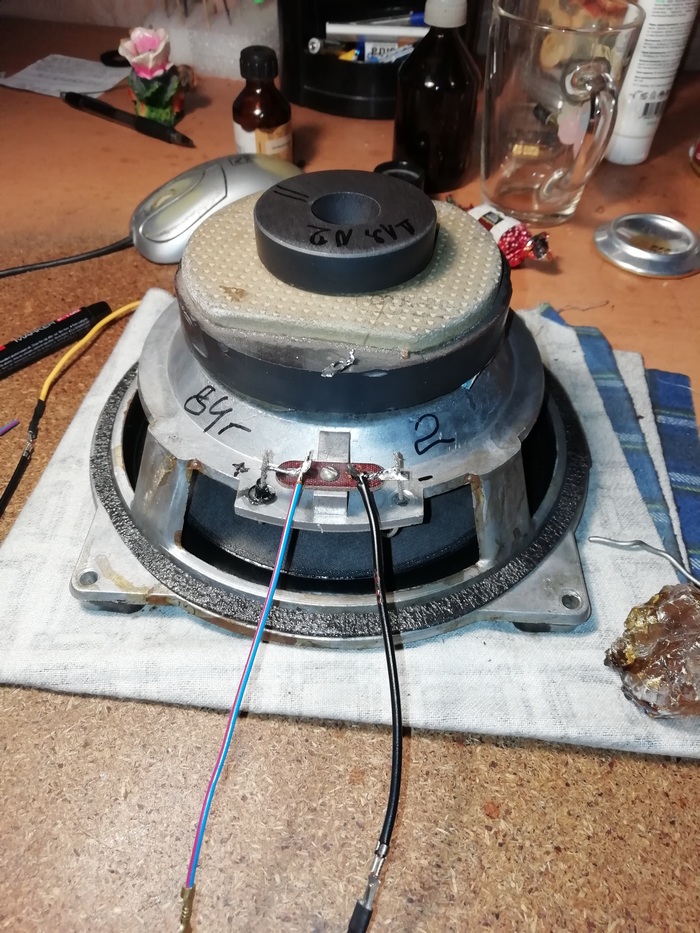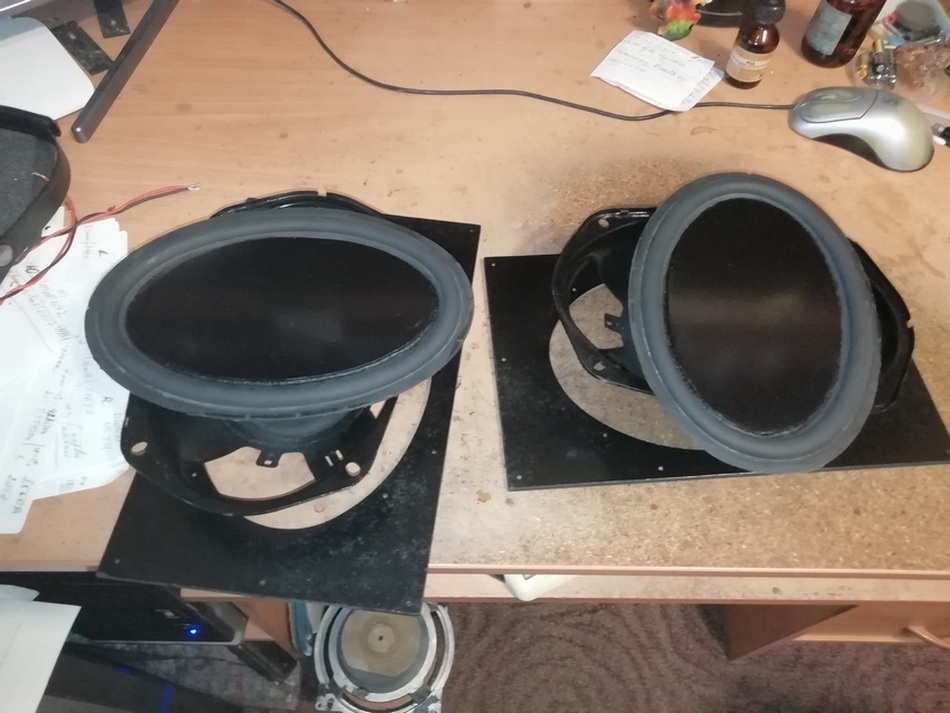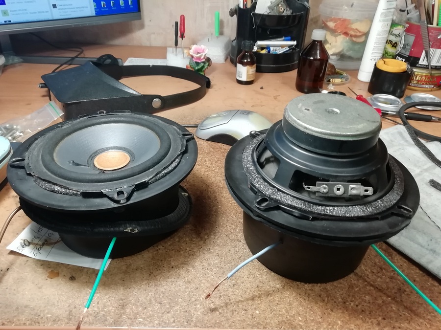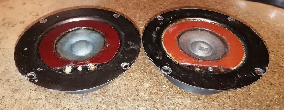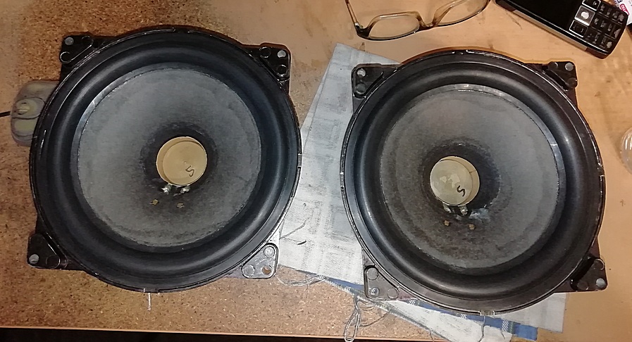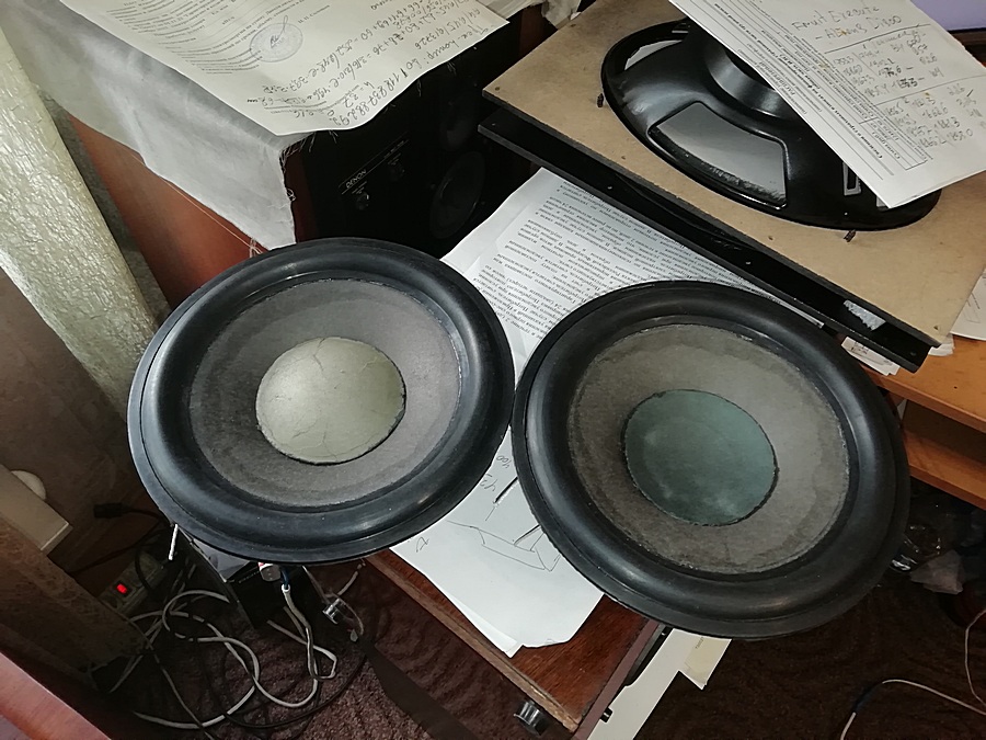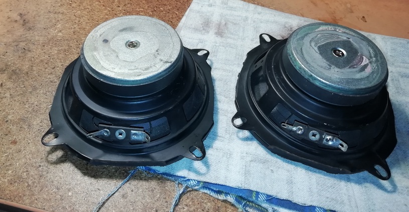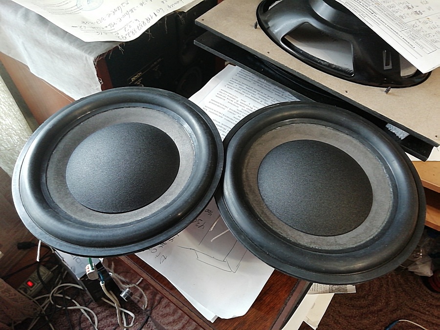 Из всего цветника были выбраны две розы под номерами №7 и №8, которые имели подвесы, но не имели ЦШ и колпаков. ЦШ я видимо снял на 12" Тонсилы когда их апгрейдил для Denon SС-106. Ориентир был на достаточно красивую мордаху диффузоров и одинаковость катушек (хотя если честно, это не фактор). Но свезло так свезло.