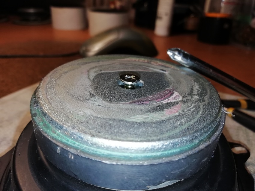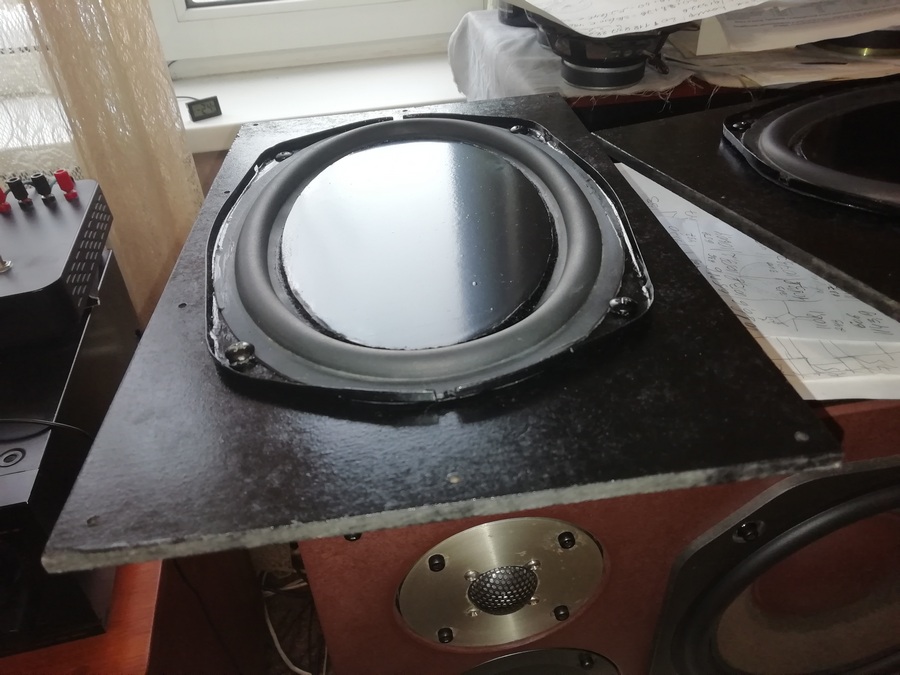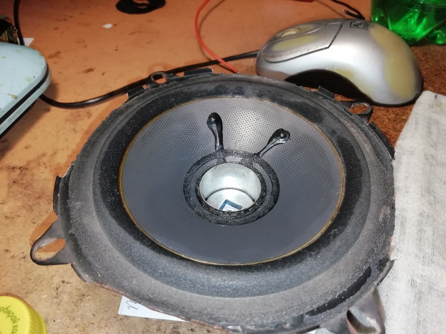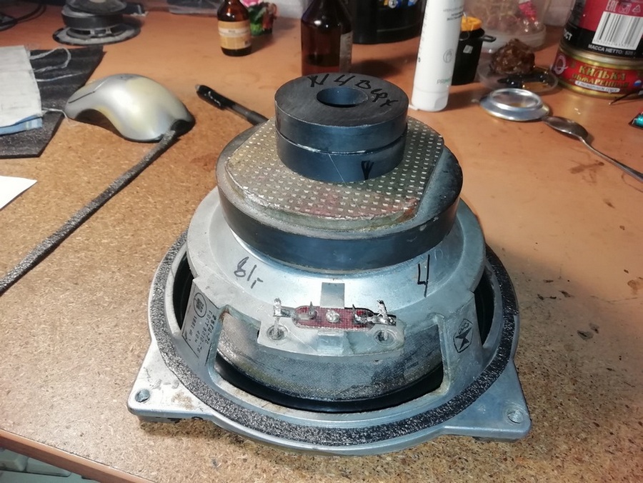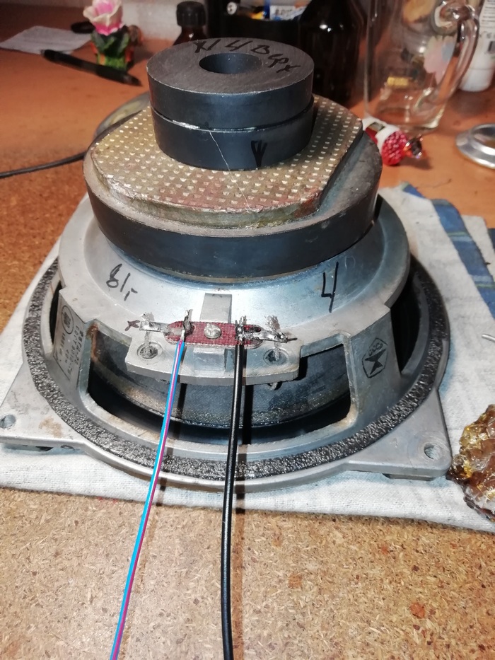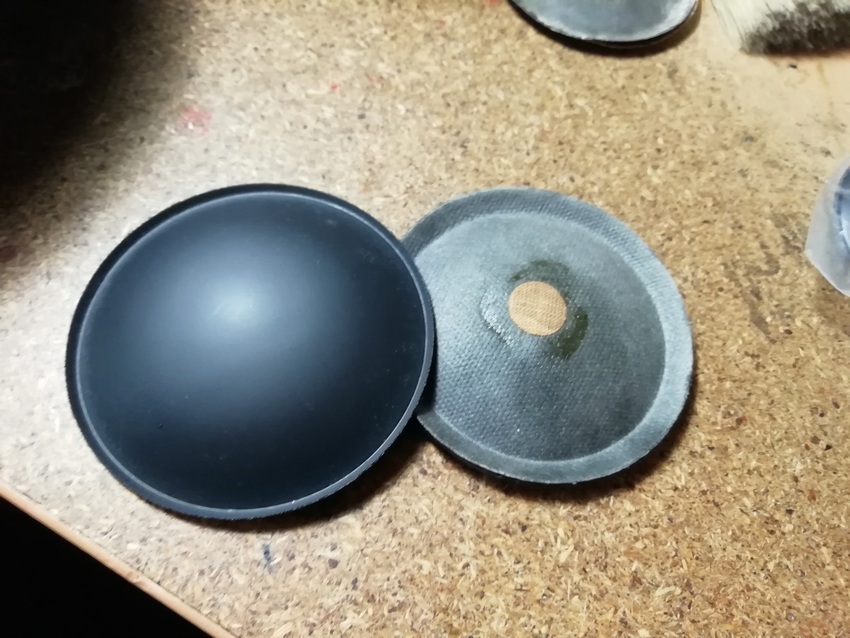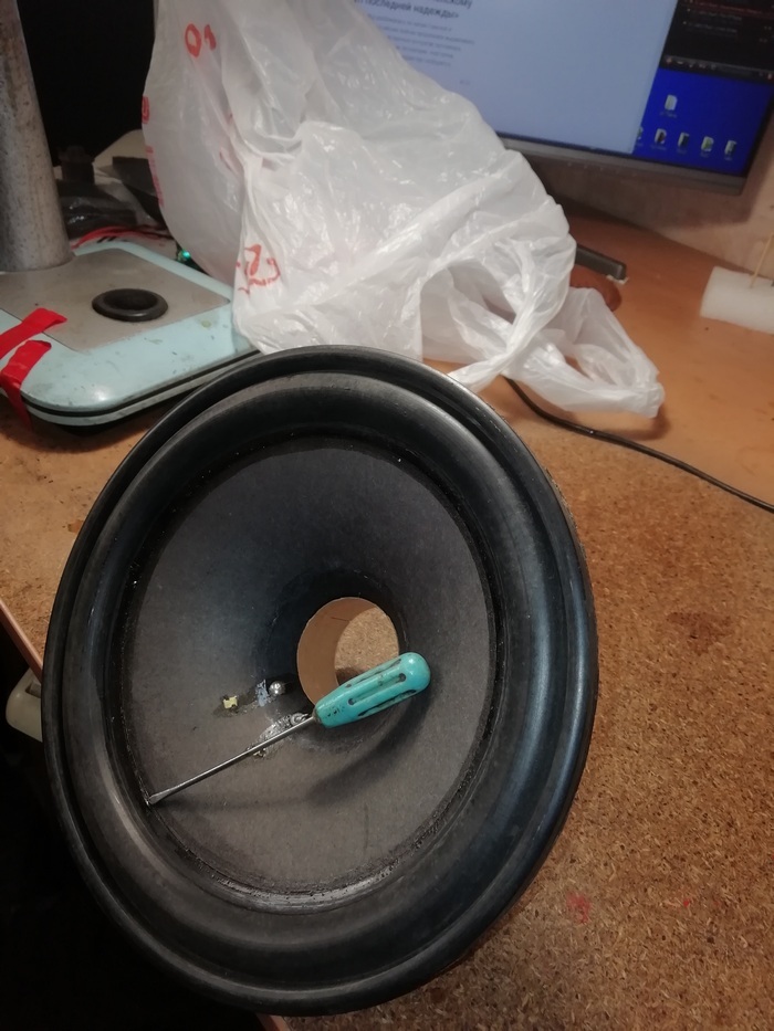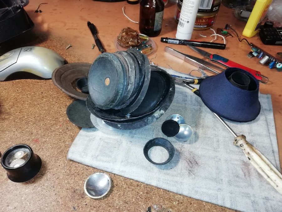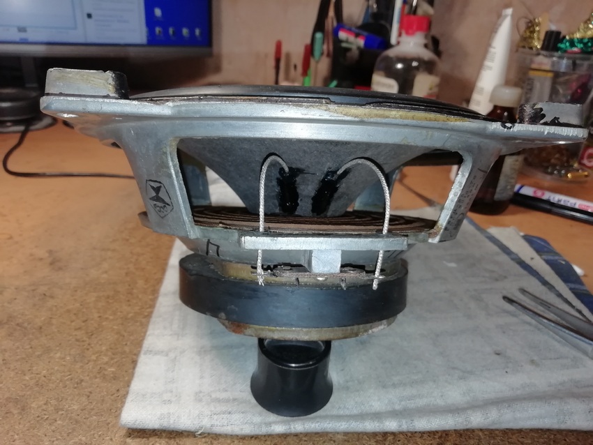 Снял пару ЦШ из плотной ткани (не сеточки хотя пару можно было подобрать). Потренькал по краю всех ЦШ, помацал за серёдку и у диффузора, и парочка нашлась, ацетон мне в помощь!!!