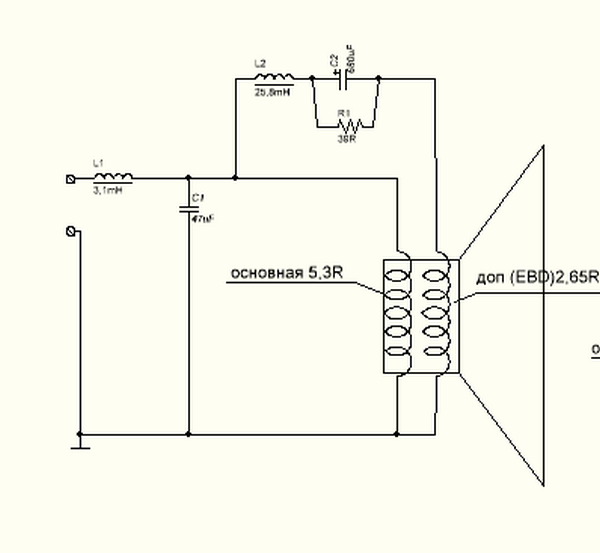 При подключении разделительных фильтров к каждой из катушек своего - как измерить T/S? Когда на основную катушку обычный второго порядка ограничивающий верх, а на второстепенную полосовой работающий в очень узкой полосе. Вот фильтр "тех" пионеров...