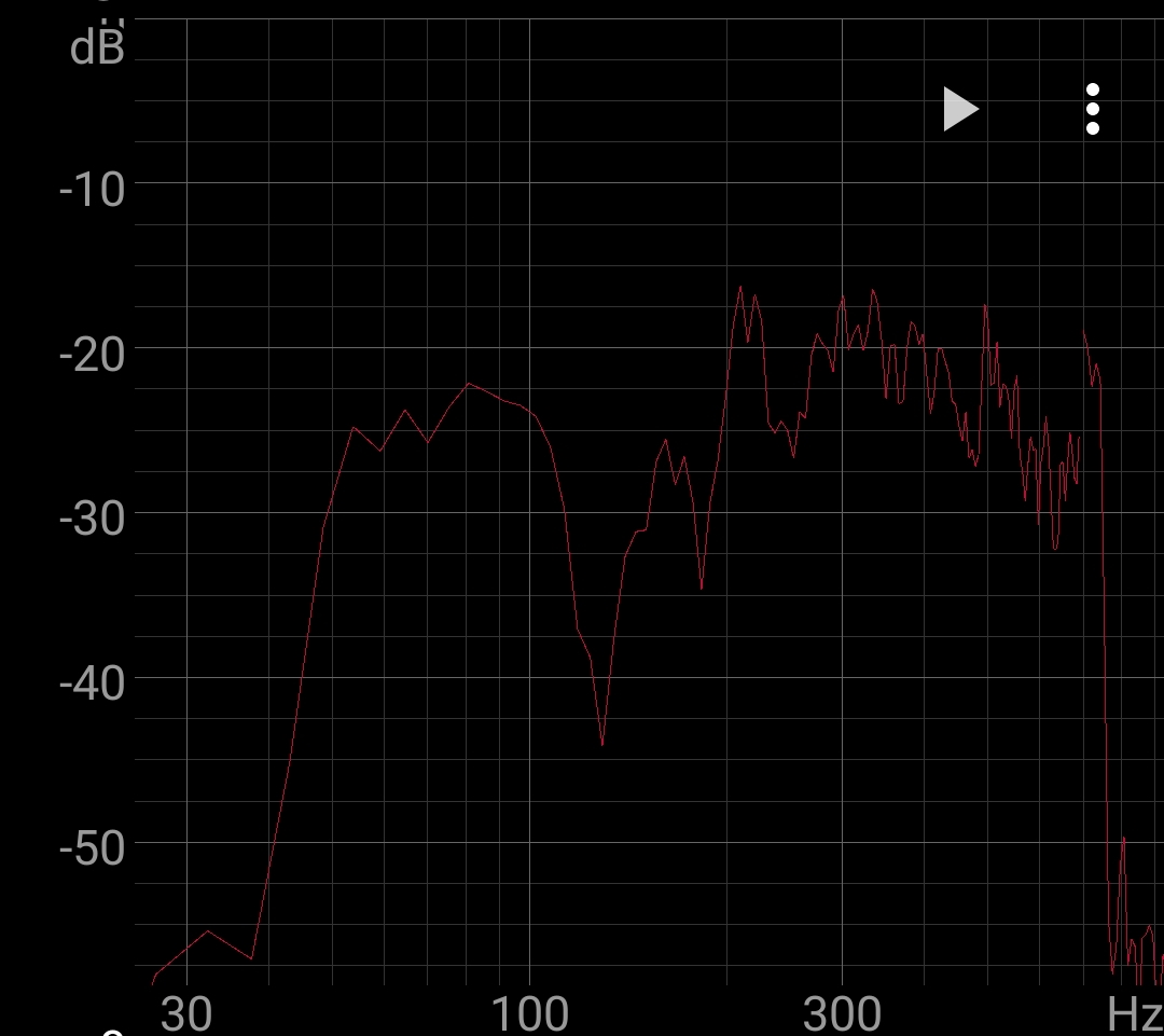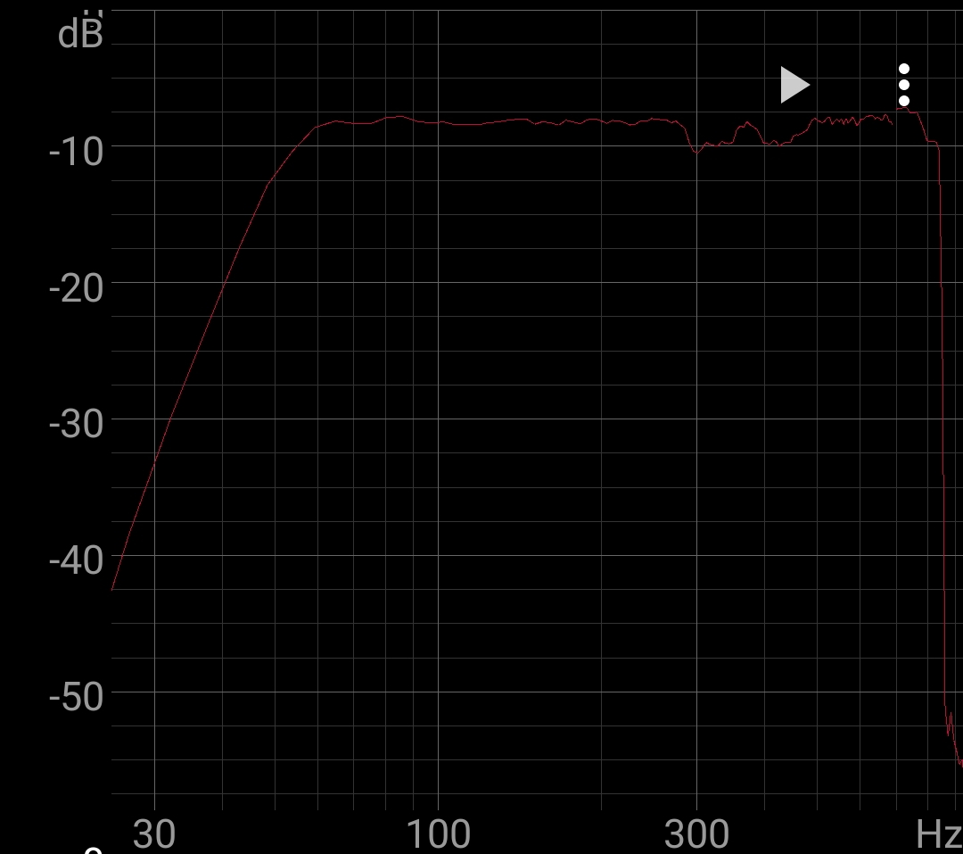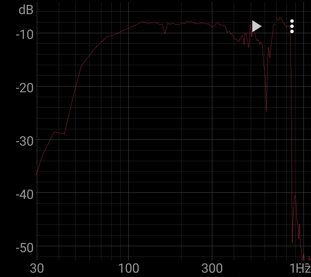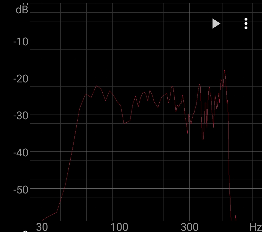 Ну... не обращая на провал внимания вижу всё примерно те же 70 Гц... Окей - отцепляю 2 нижних динамика, остаётся только пара верхних и... нижние получается просто дырки затыкают: