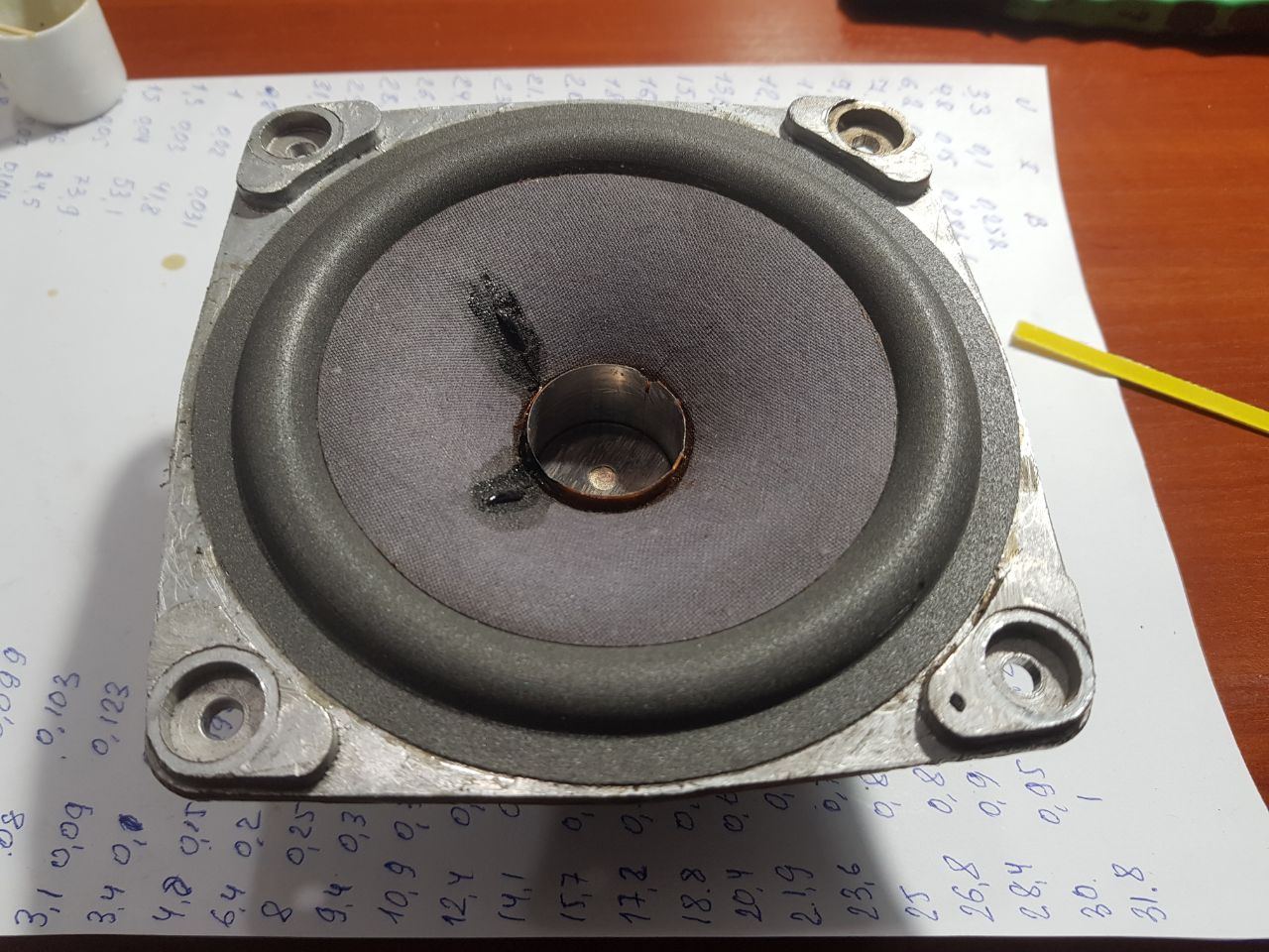 Диффузор пока что без колпака, и он не такой как фигурировал ранее, тут он плотнее и нет провала на 1кГц, где то на старте темы были посты с тканевым подвесом! и таким же диффузором.