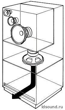 а ты показываешь вполне банальную конструкцию когда НЧ динамик стоит в классическом ящике, смотрит вниз (как в сабвуферах) и излучает "с лица" и внизу (на фото не всё видно, непонятно, дует он только через щель или нет).
