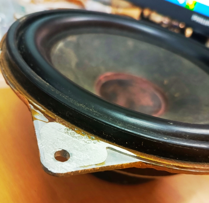 Был старый советский динамик (Кинап?). "Лучи" были приклепаны к верхней шайбе МС и верхней части диффузородержателя.