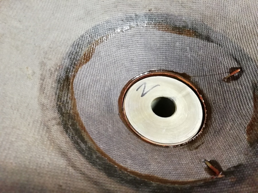 Сборка НЧ как обычно на проставках в зазоре. Колпаки сняты. Будут устанавливаться новые. Такого же размера. Торец керна на пару миллиметров ниже верхнего среза каркаса катушки.