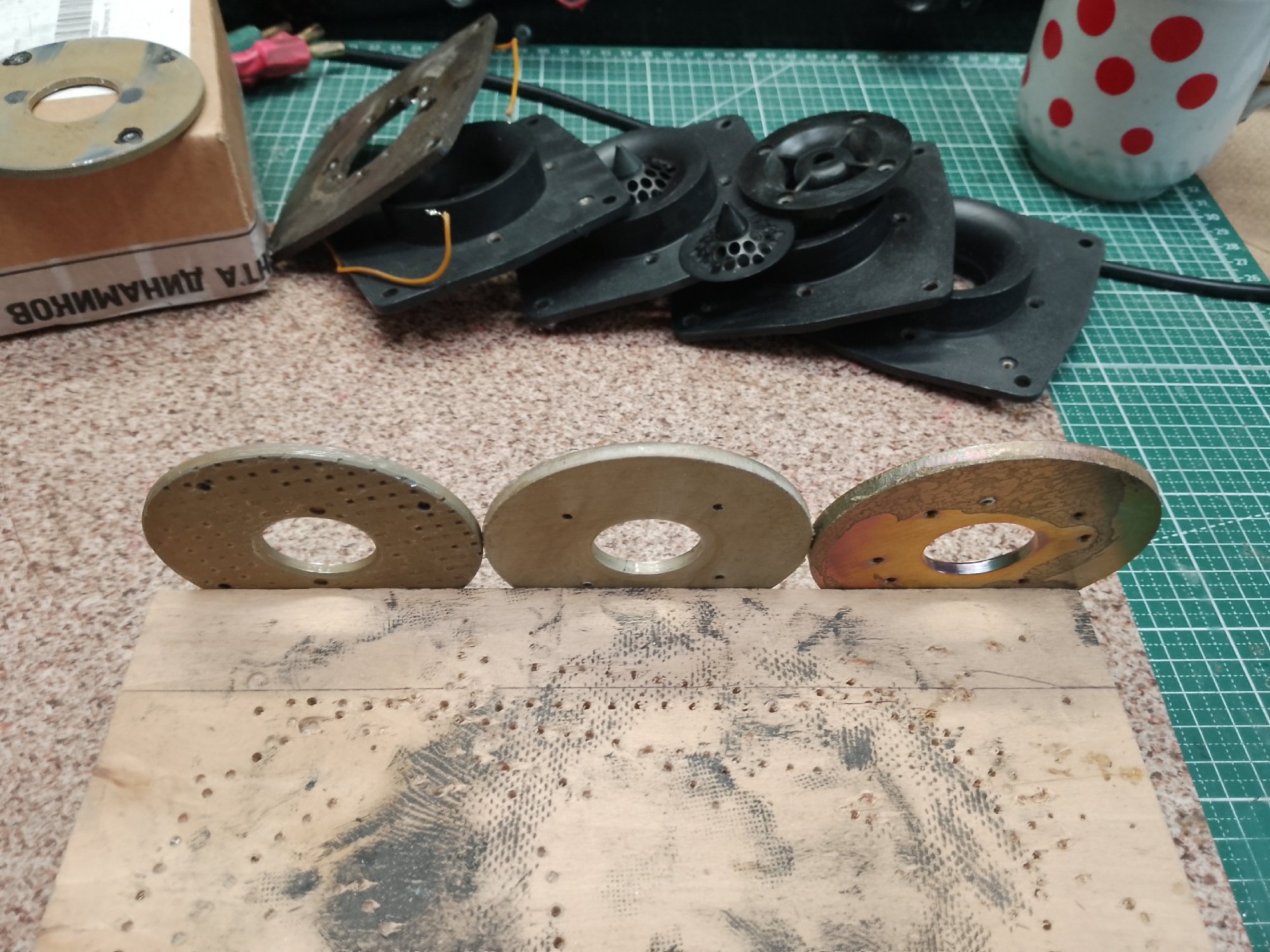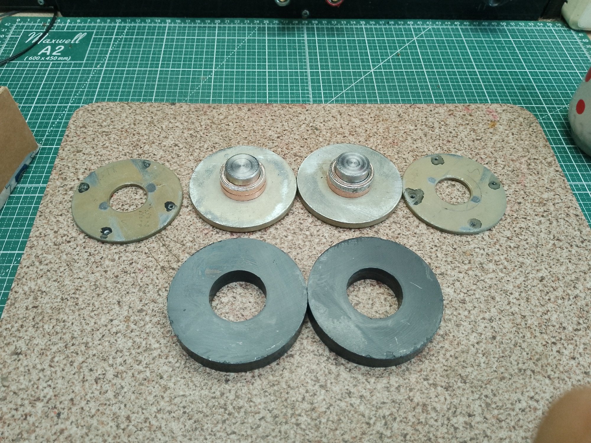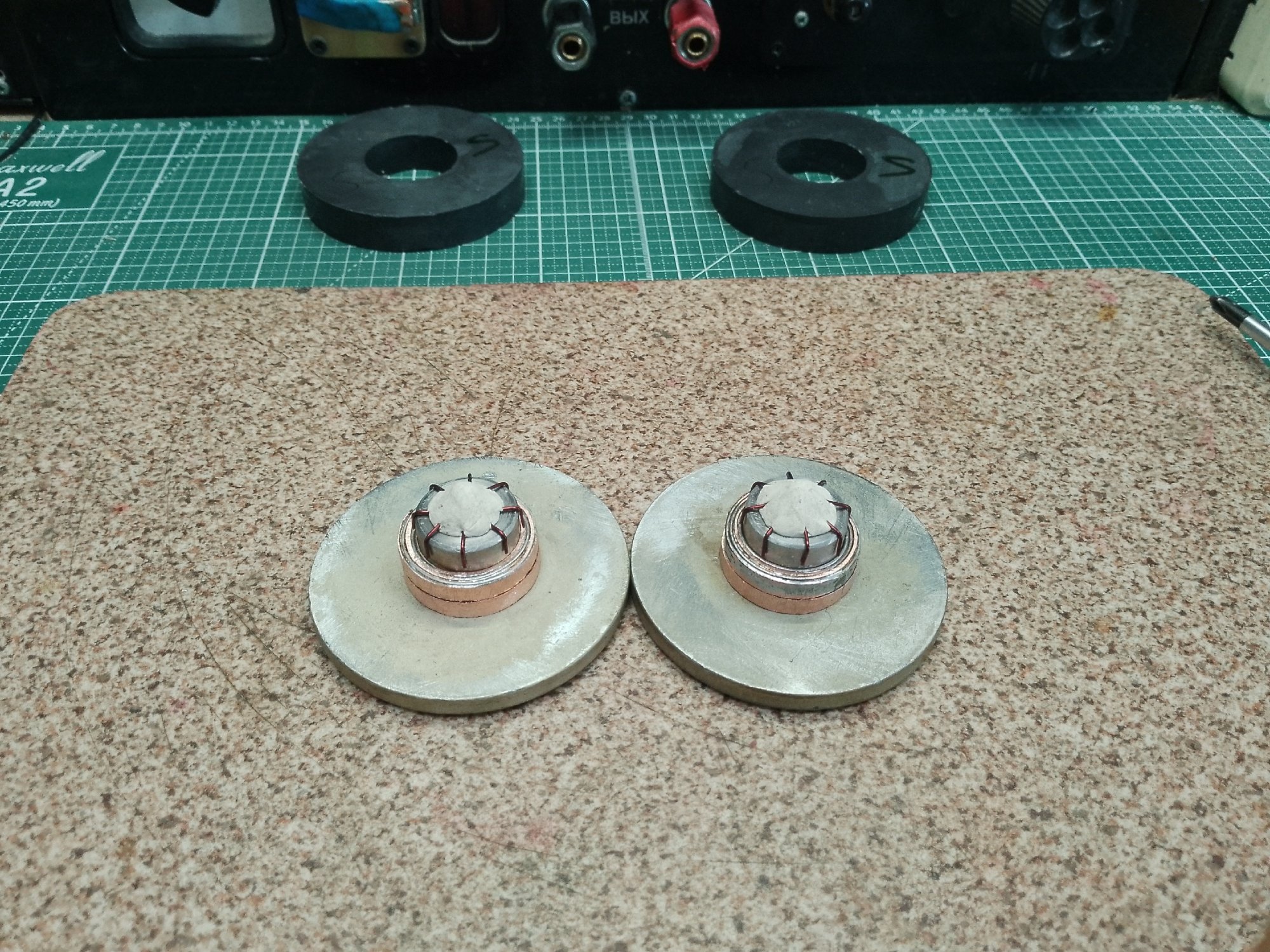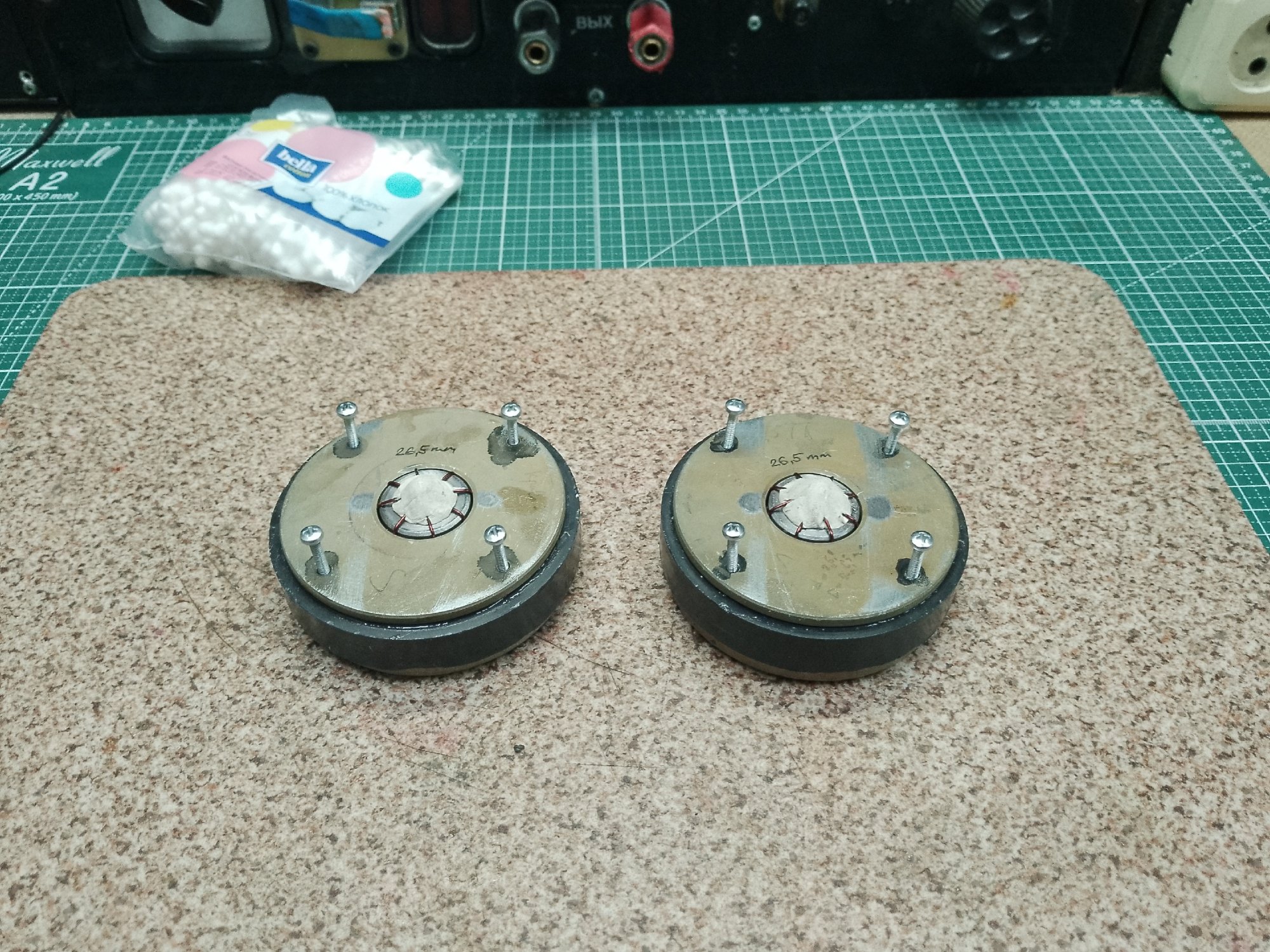 Ширина и высота зазоров у всех динамиков примерно равна, т.е. керн 25мм, диаметр отверстия верхнего фланца 26.5мм, высота зазора 4мм.