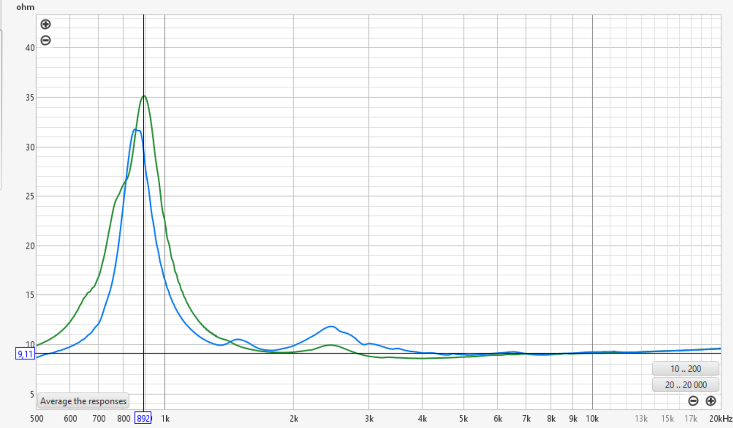 Динамики нагрузились линзой, ощутимо лучше (громче) звучат в сторону. резонансы 892 и 857 герца. второй горб 2.5к на графике вылез после добавления линзы.