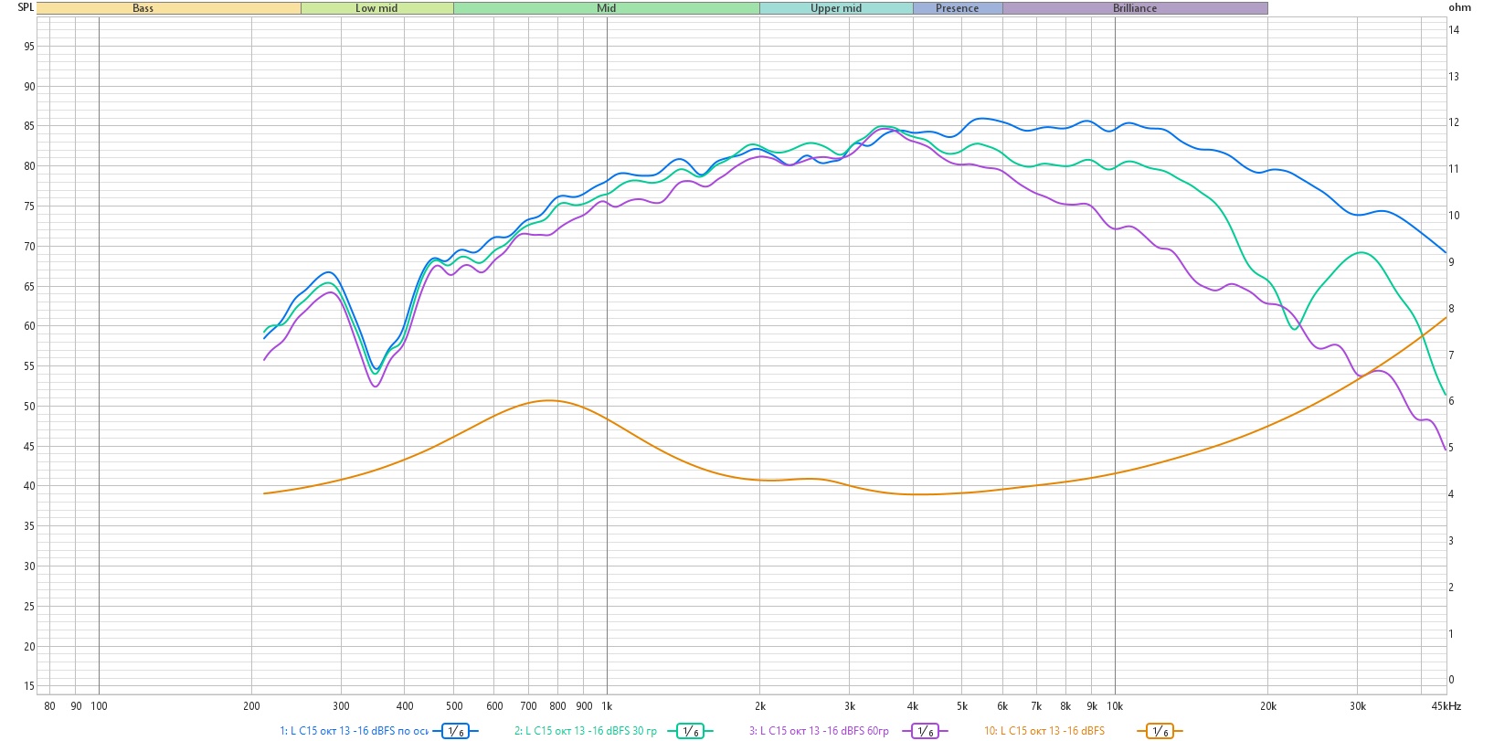 АЧХа по оси, 30, 60 градусов, импеданс: