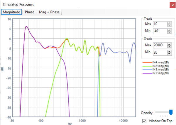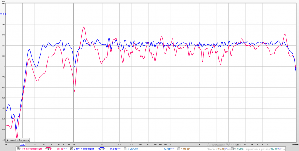 К примеру если использовать библиотечный КИХ фильтр в сигма студио на 512 тапов и на его основе реализовать кросовер, то мы получим такие картинки.
