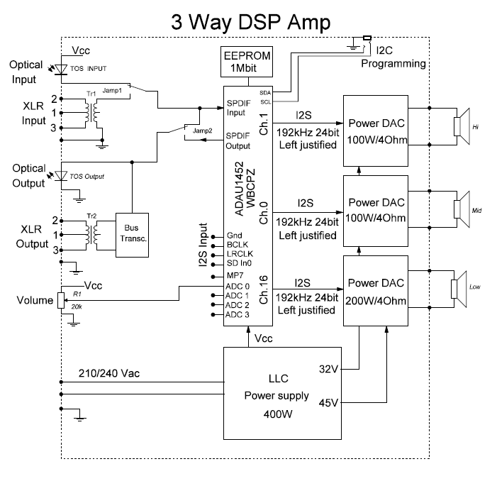 Благо мне не нужно иметь ацп для подачи сигнала в адау т.к. я имею возможность выводить цифру сразу на силовой цап нужной мне мощности. Я уже давно отказался от аналогового входа в усилителях в пользу цифрового, чем сильно уменьшил себе головную боль при построении активной АС. Это кстати ещё один ответ почему мне оптимальнее всего собрать активную АС на адау - у меня в усилителях нет аналогового входа.