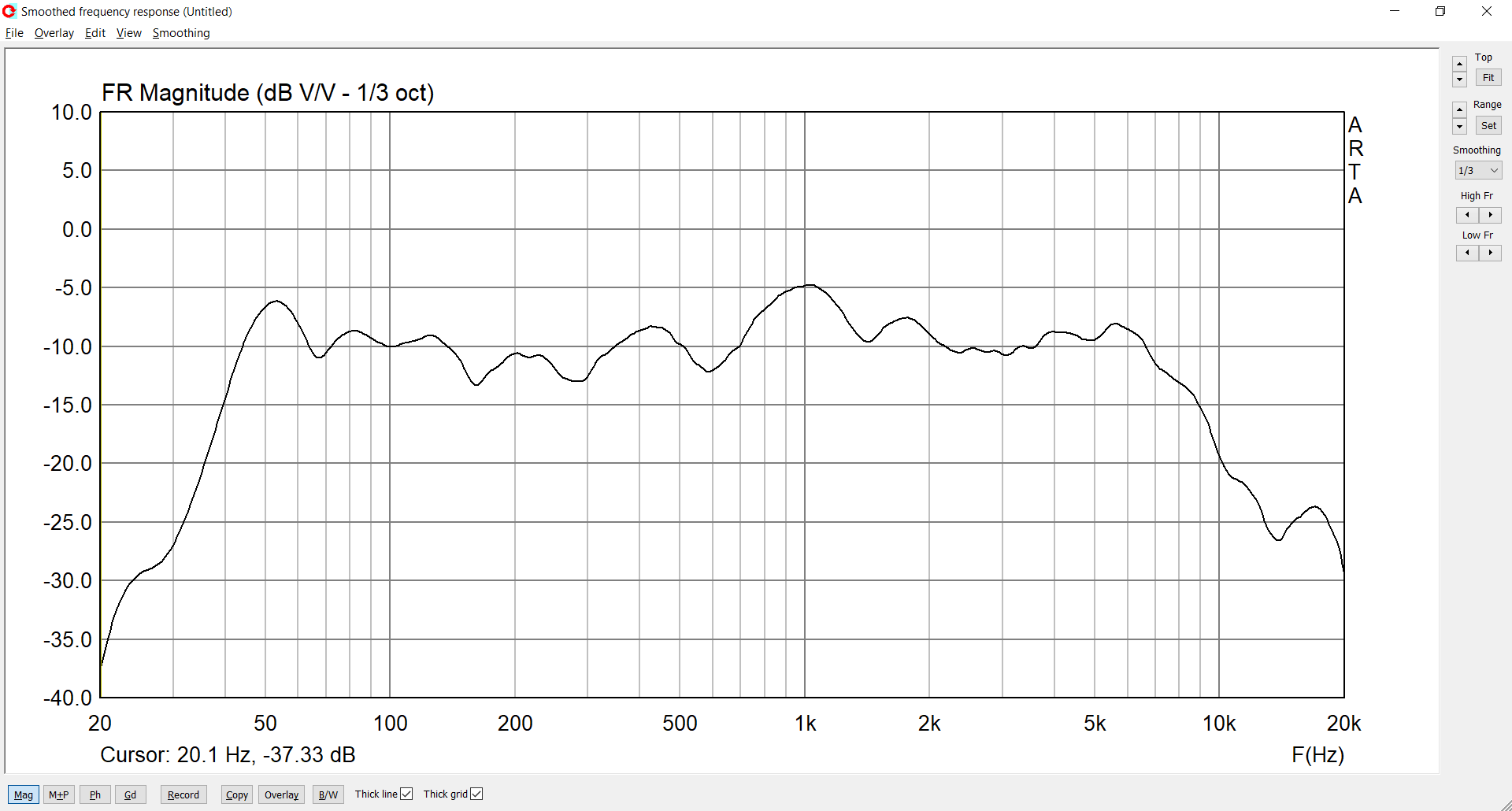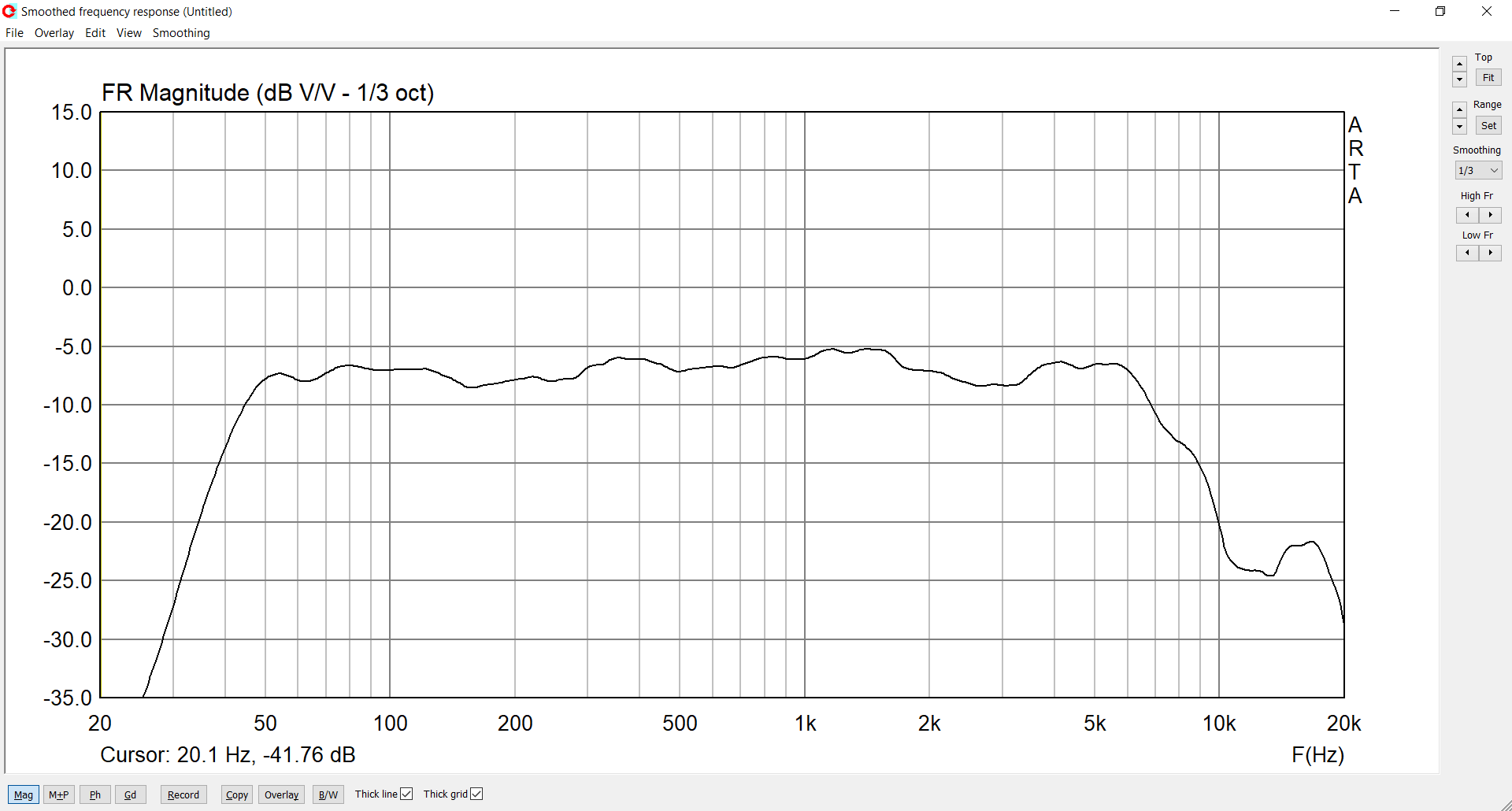 Посидел 30 минут, подогнал по АЧХ пассивными фильтрами и регулятором баланса по уровню (остался там же, 2 щелчка в сторону 8-Ом). Результат ПОСЛЕ подгонки: