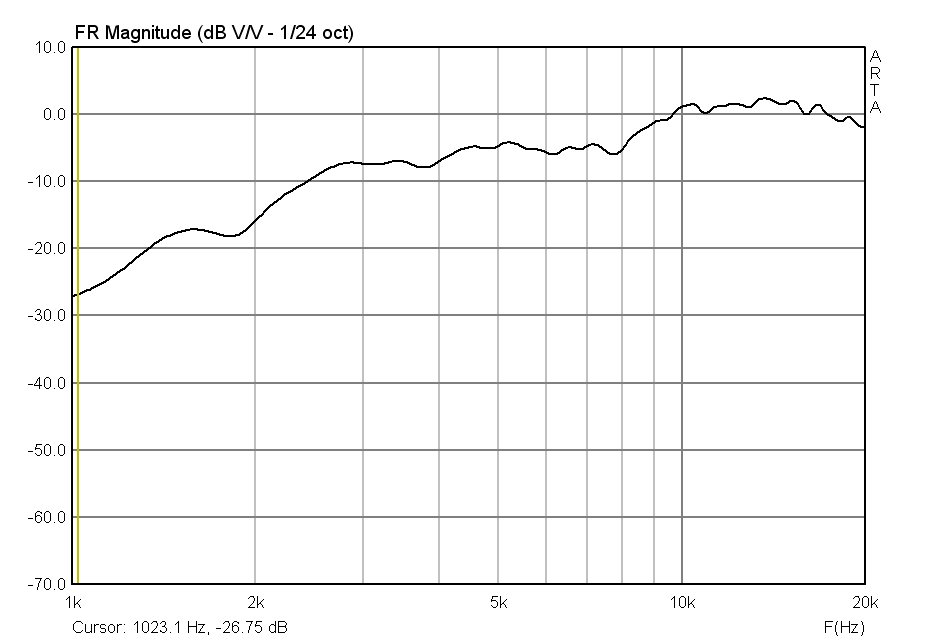У моих ширина вообще фантастическая. Я когда начал измерять АЧХ, сразу по импульсу шума почуял что-то не то: как ни отвернёшь динамик, а ВЧ шипение не меняется.