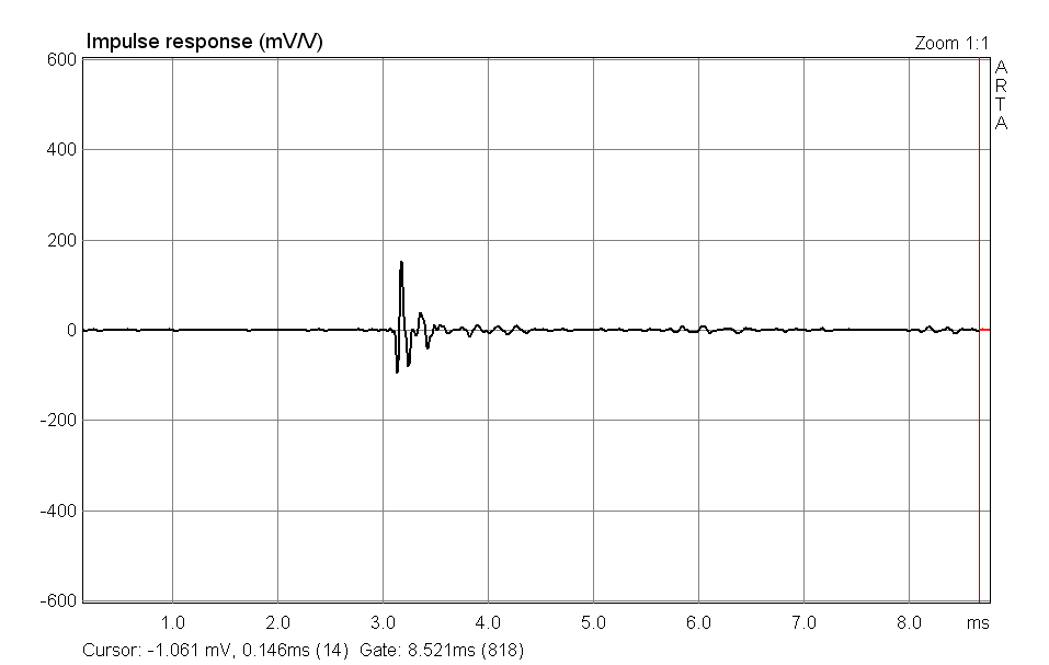 Для сравнения - импульс доработанного и отцентрованного 10ГДВ2-16 с хорошей АЧХ.