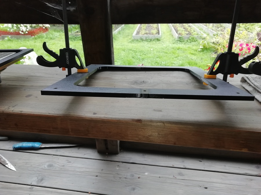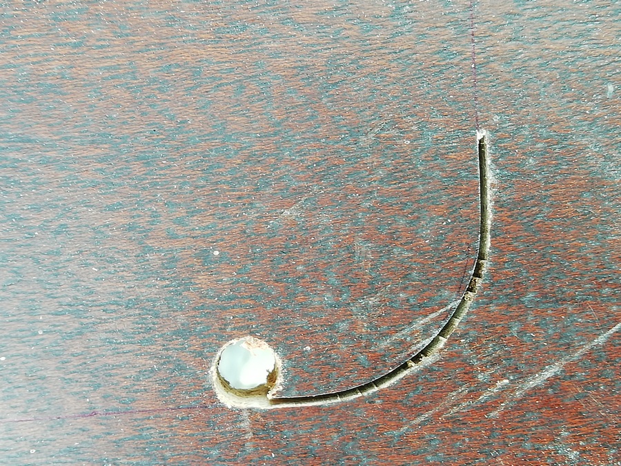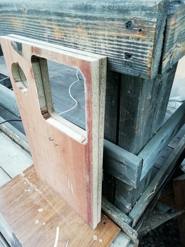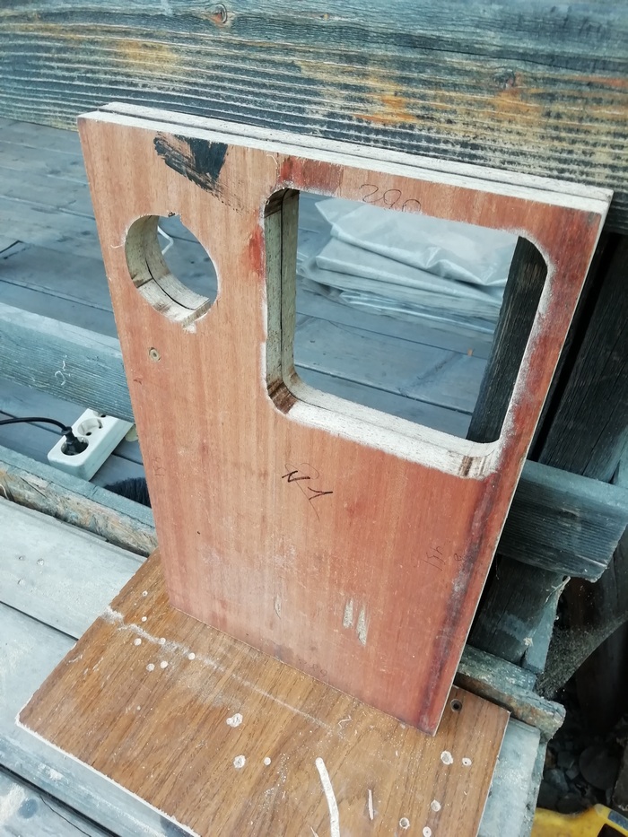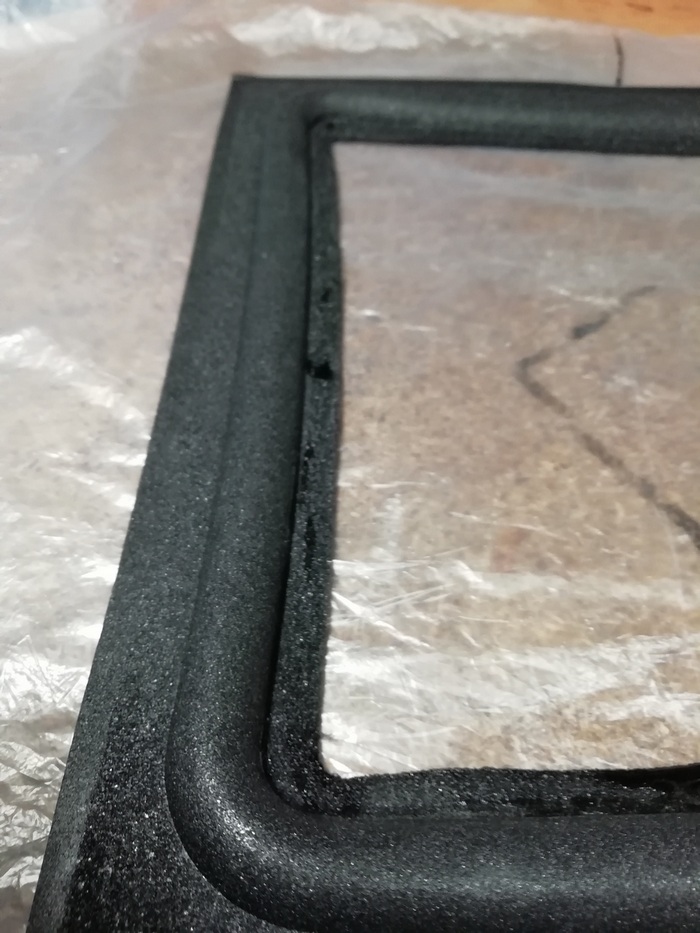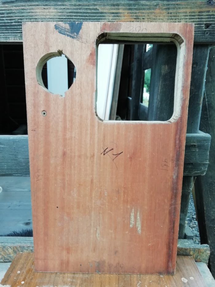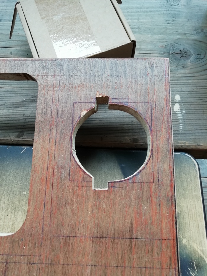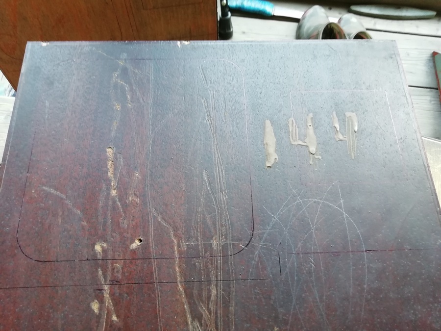 А без него размечать и смысла нет. Пока туда-сюда, выявился дефект. У одного из корпусов, с морды-лица, пошёл правый, верхний угол. Пришлось склеивать
