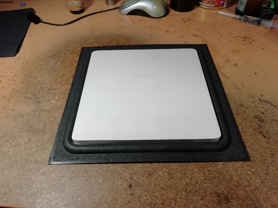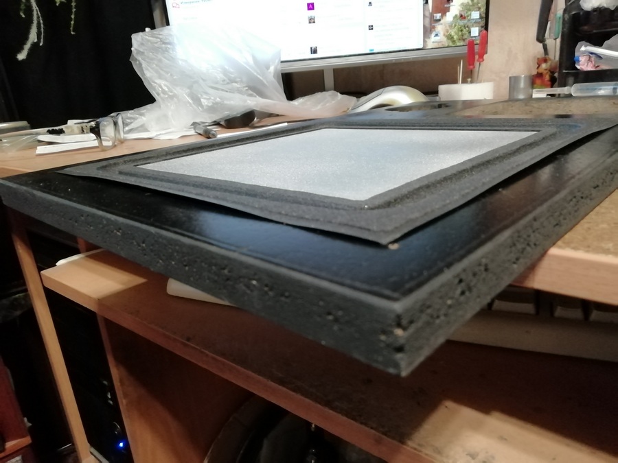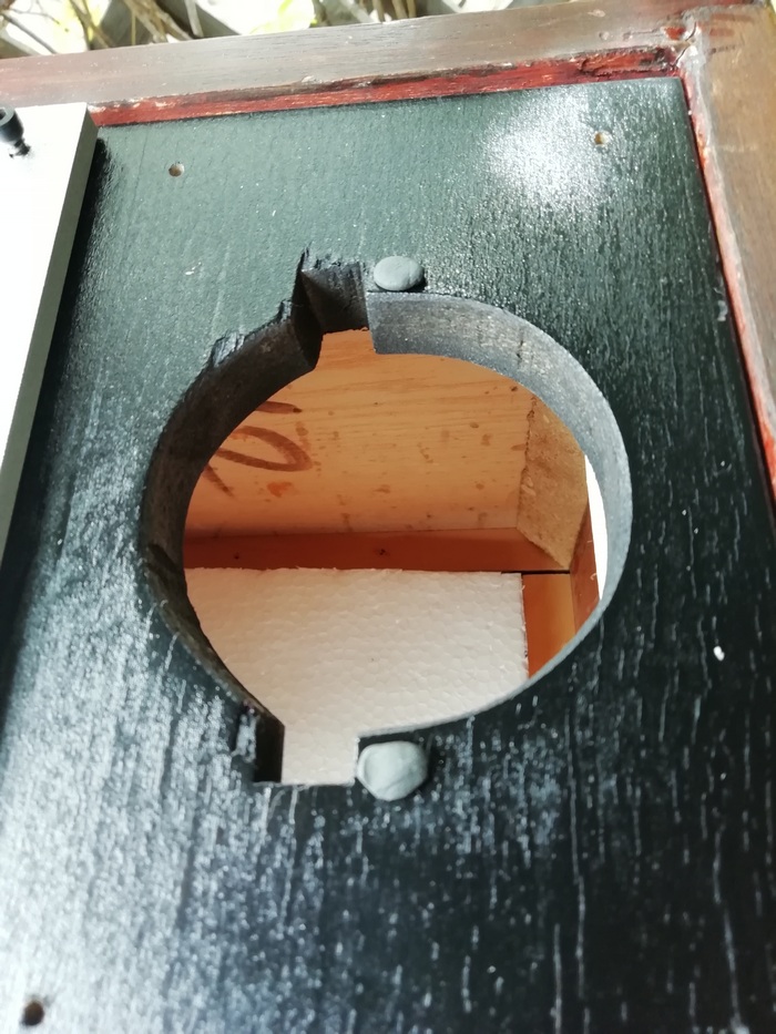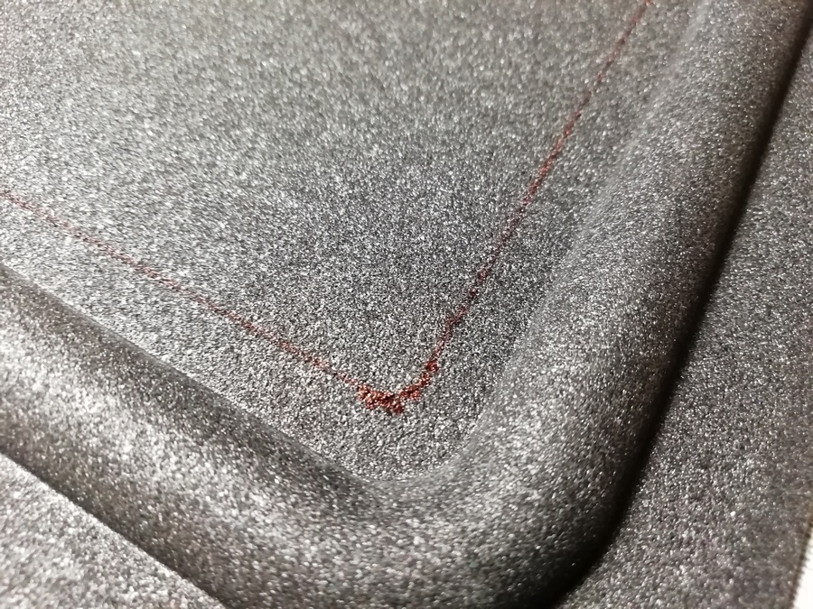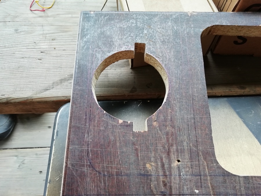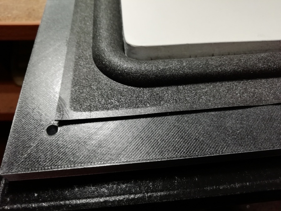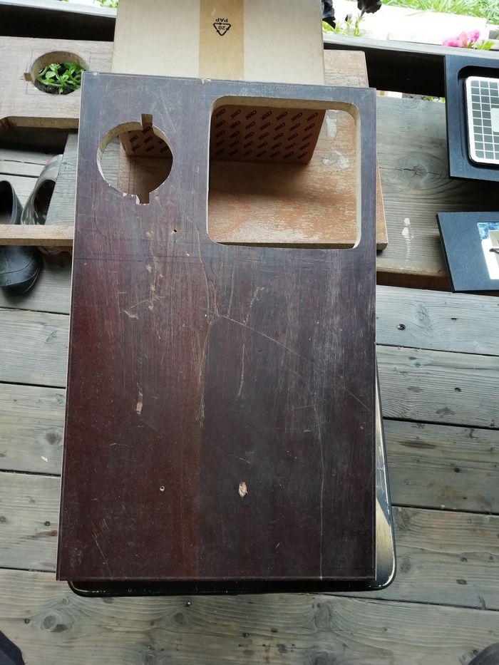 А без него размечать и смысла нет. Пока туда-сюда, выявился дефект. У одного из корпусов, с морды-лица, пошёл правый, верхний угол. Пришлось склеивать
