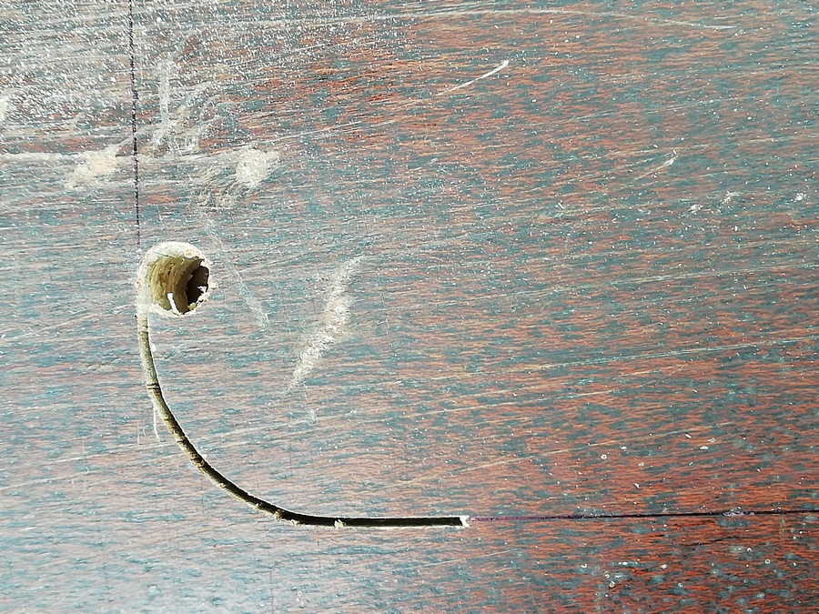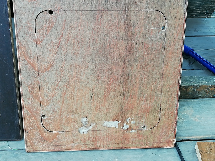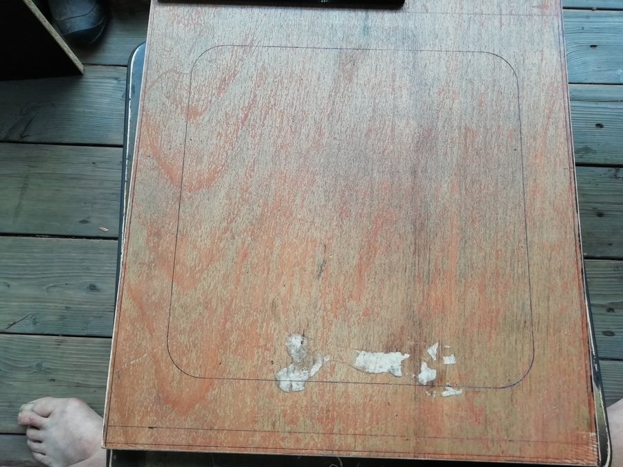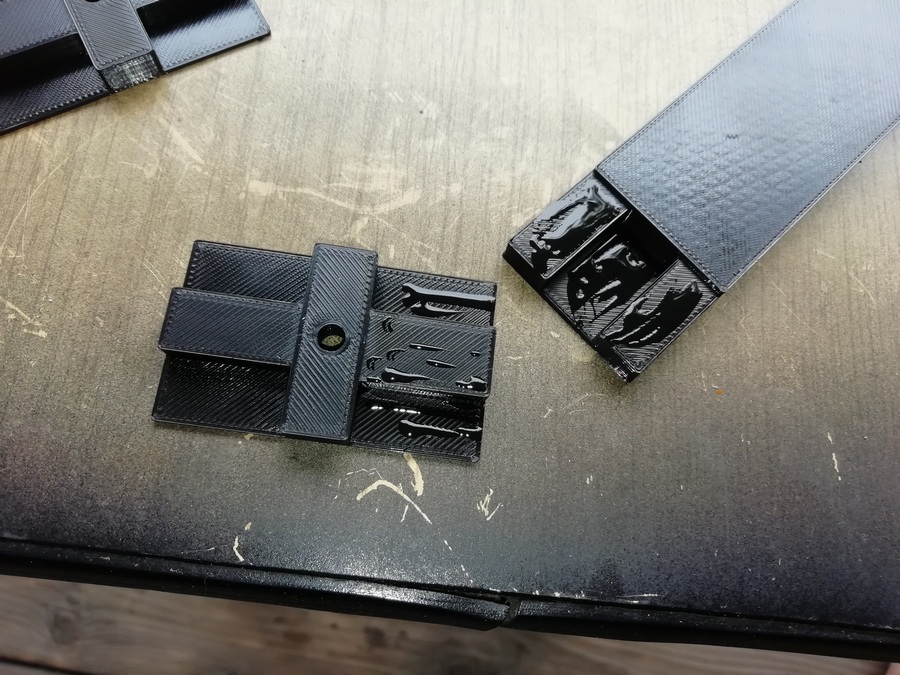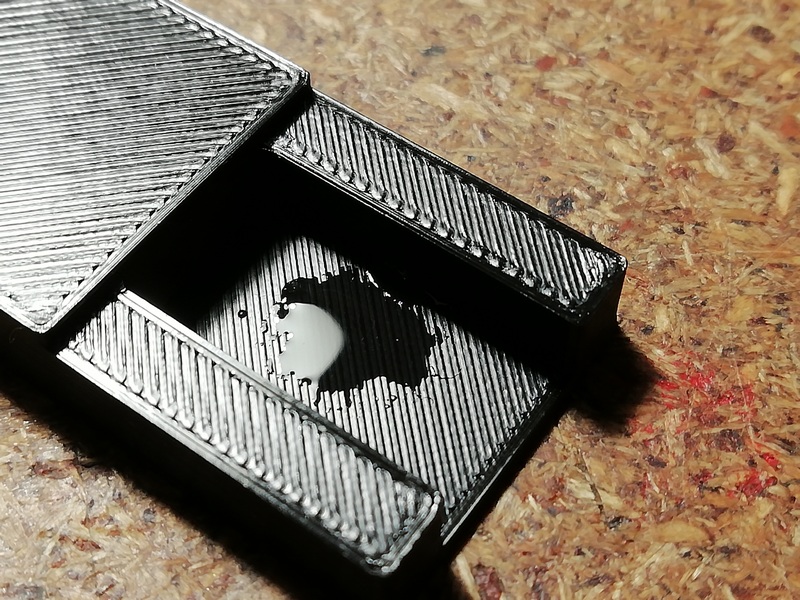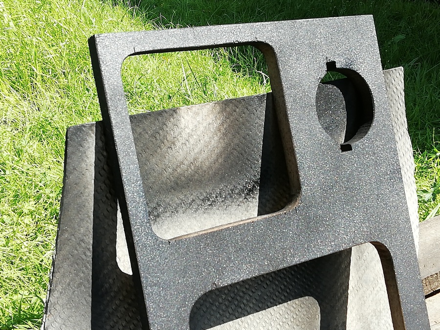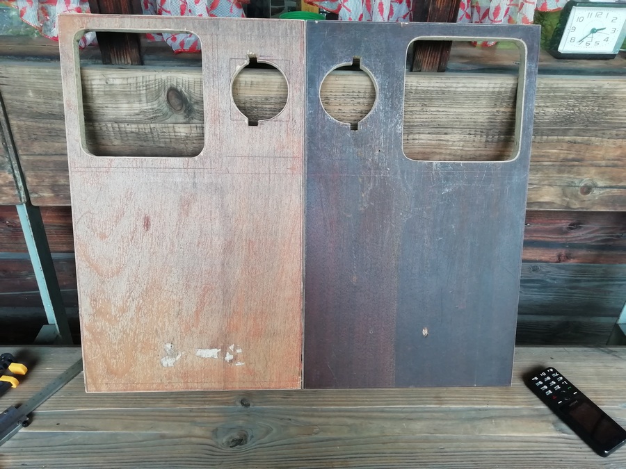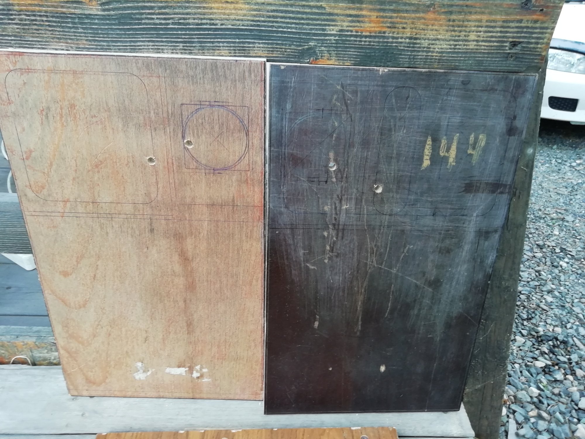 А без него размечать и смысла нет. Пока туда-сюда, выявился дефект. У одного из корпусов, с морды-лица, пошёл правый, верхний угол. Пришлось склеивать