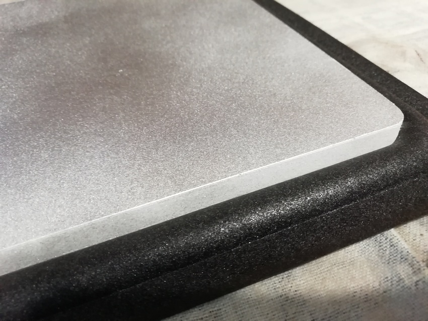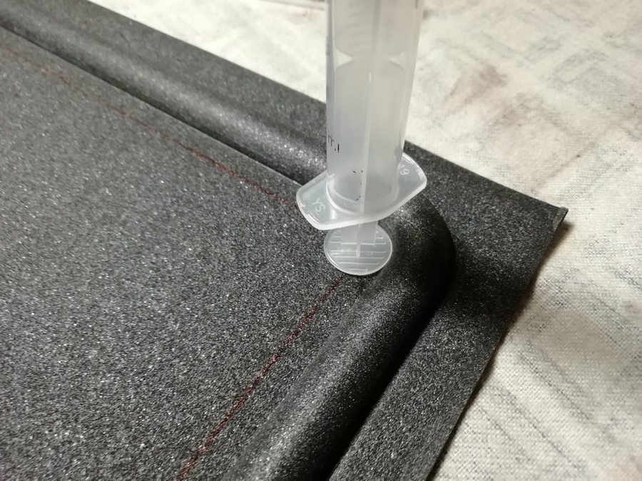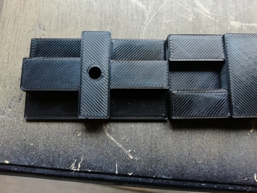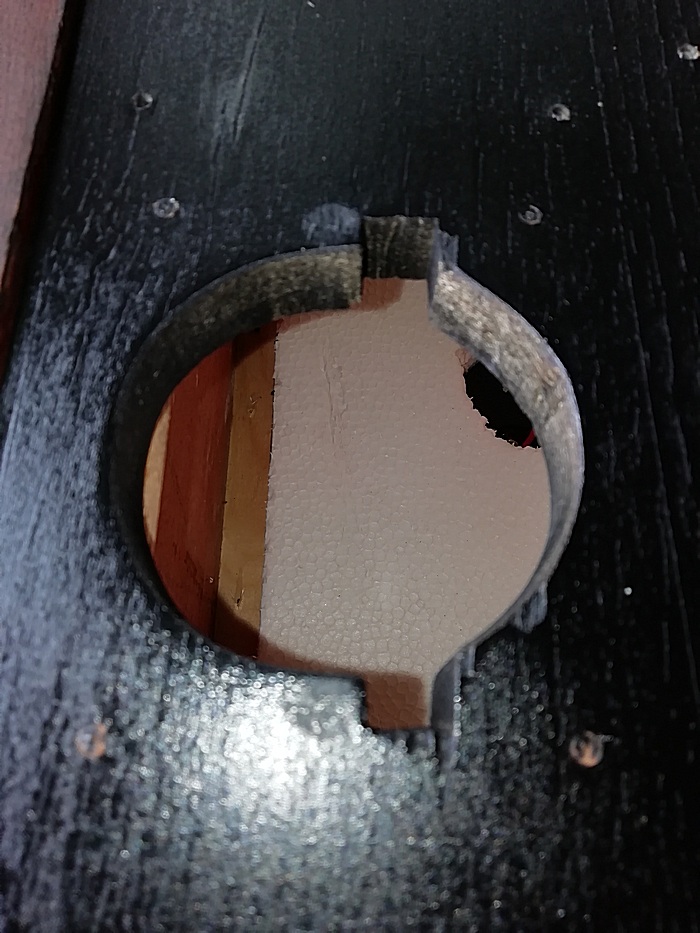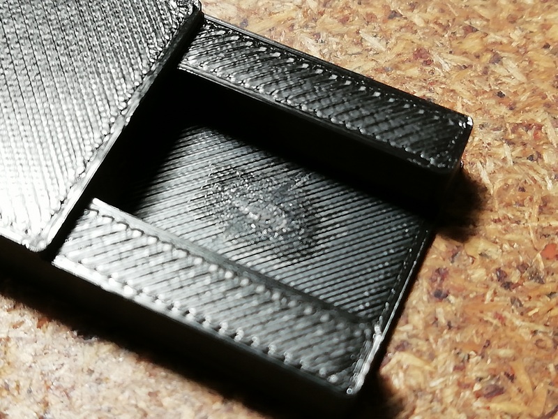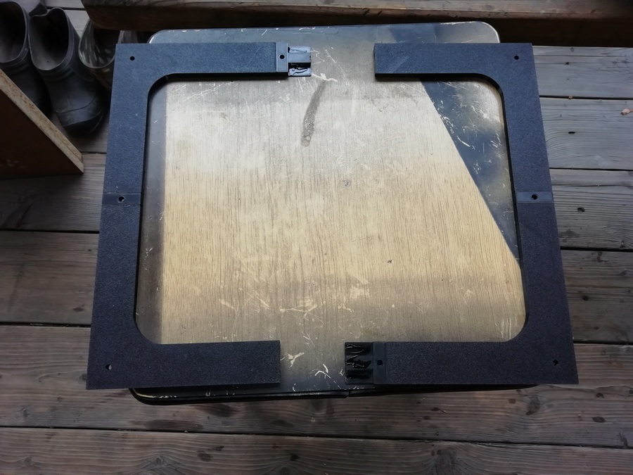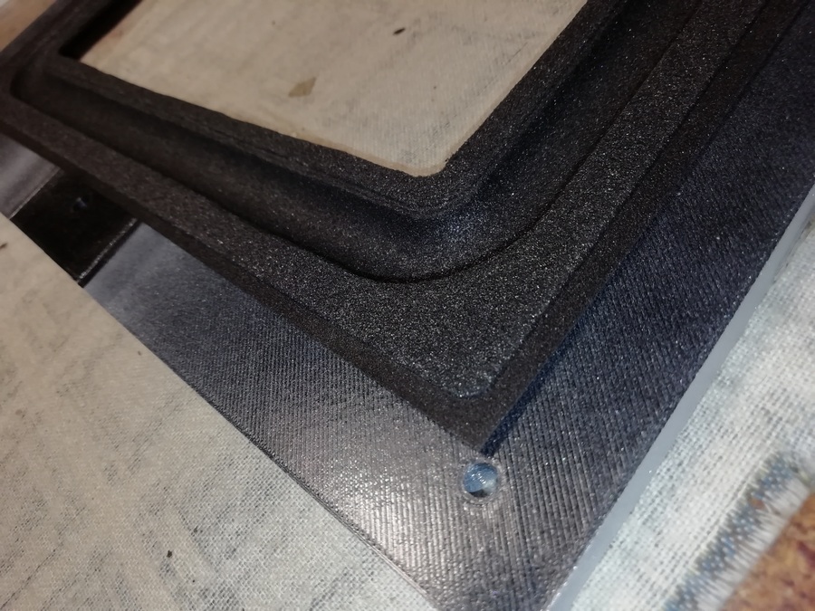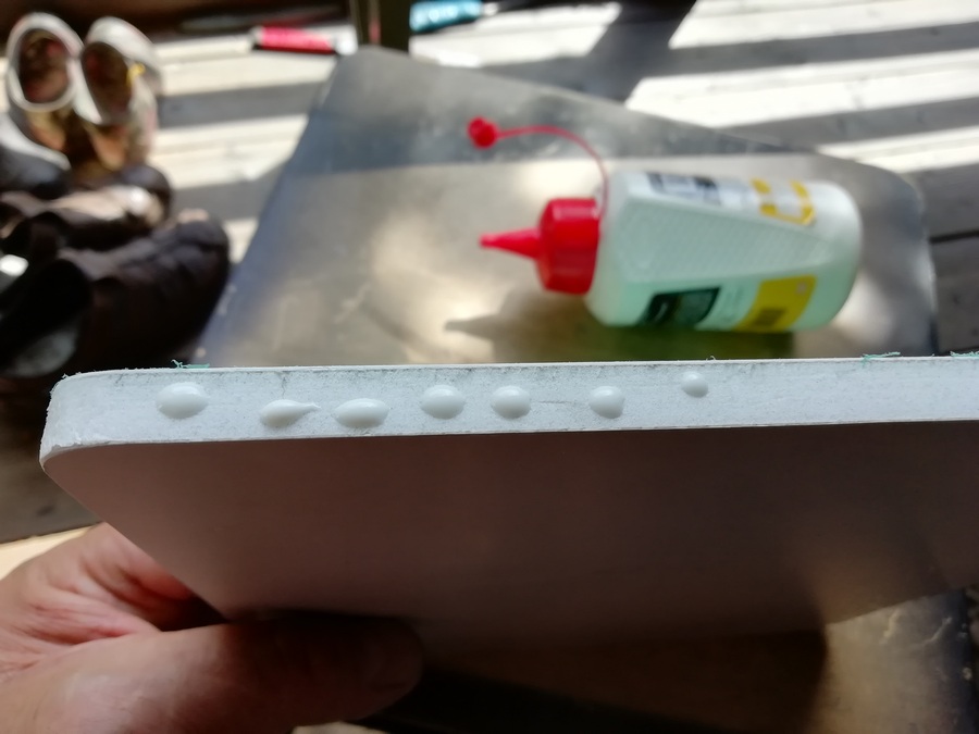 А без него размечать и смысла нет. Пока туда-сюда, выявился дефект. У одного из корпусов, с морды-лица, пошёл правый, верхний угол. Пришлось склеивать