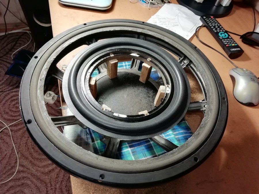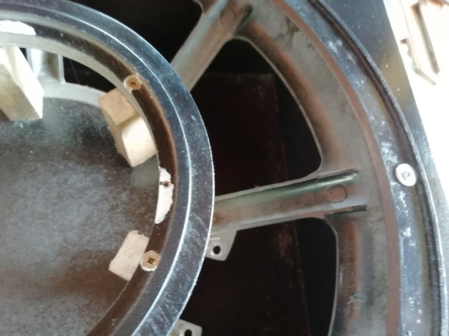 Посмотреть вложение 19282 но.... Тело гайки D=5,5 мм. Слишком всё близко к краю получается. Лоханулся я с отверстием под динамик."Слегка" большое получилось и потому только саморезы. Благо корзина лёгкая и любой из динамиков внутри неё, восемь саморезов по корзине выдержат на ура.