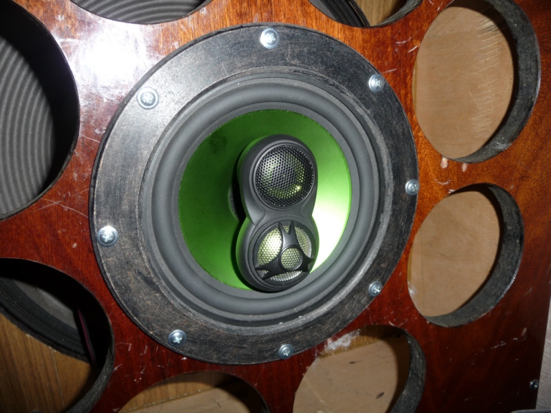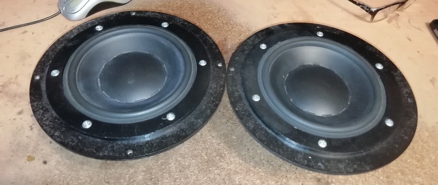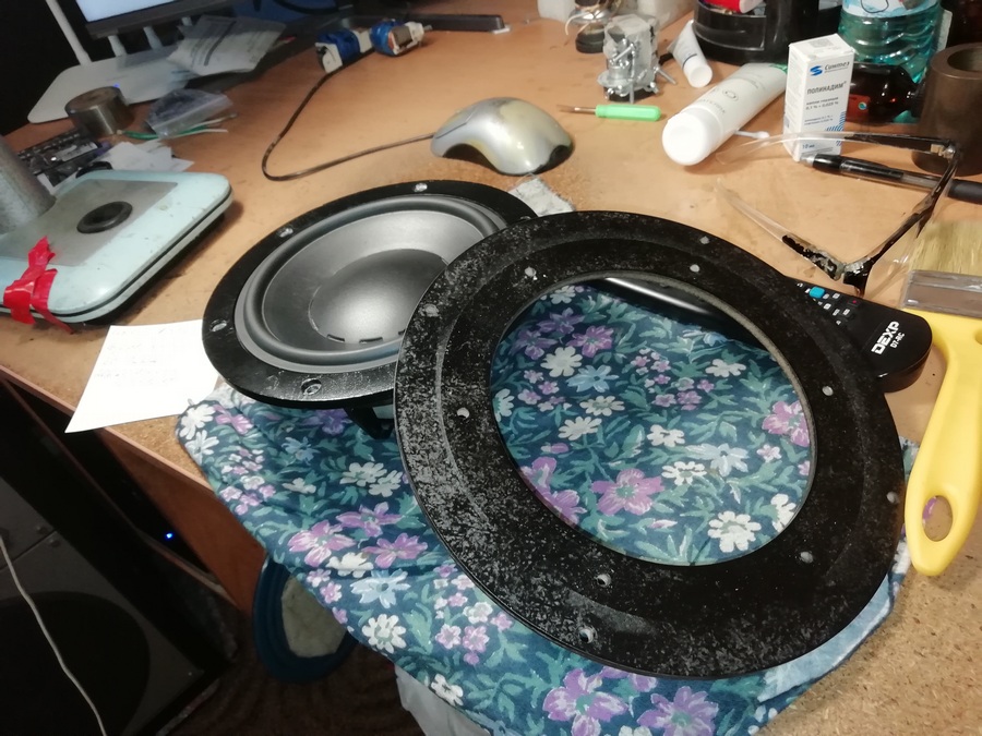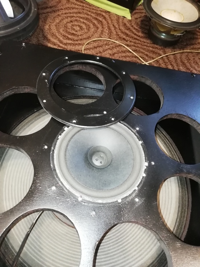 Дополнительный фланец, на данный момент прикрученный к каждому из динамиков, был сделан для установки динамиков в 8" отверстия АС , но не срослось! Для установки в Альфу, фланчики будут сняты.