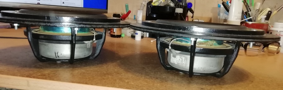 Появились Альфы у меня, только сегодня. За всё время отсутствия в них ничего не изменилось. Ни царапинок, ни сколов, ни разрывов (на первый оценочный взгляд) не появилось. Фото их сделаю вечером. И фото тех Динааудио, который хочу установить первыми. Сейчас установлены ШП - солянка. Корзина, МС, подвижка всё разное, но состыковалось по размерам высот, широт, зазоров и расположения катушки.