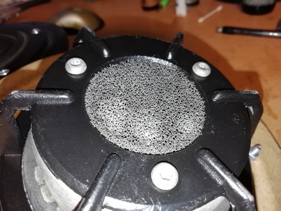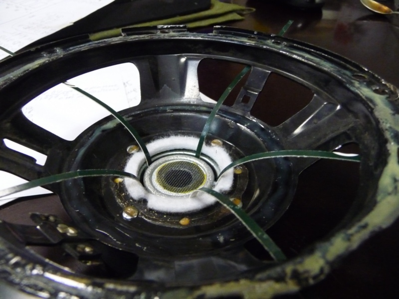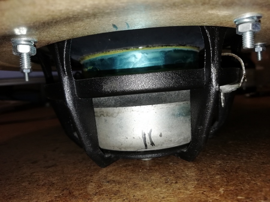 Динамики достались мне в совершенно убитом состоянии. Были полностью разобраны, отмыты. Алюминиевая корзина, которая была безжалостно местами отпилена - восстановлена. Катушка, намотанная круглым алюминиевым проводом и сгоревшая, была перемотана медным проводом с четырёх ом на восемь.