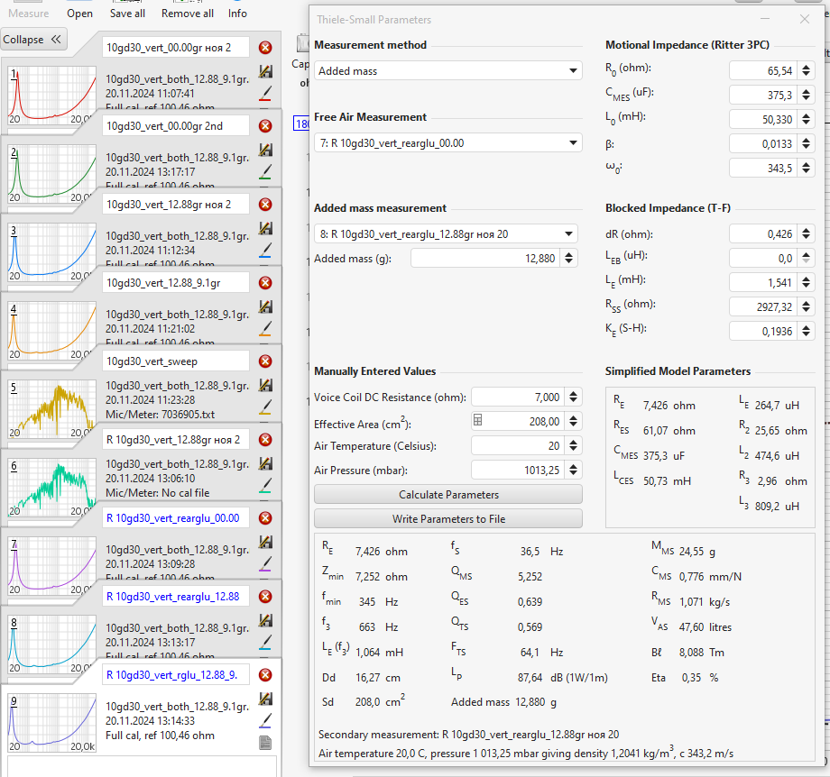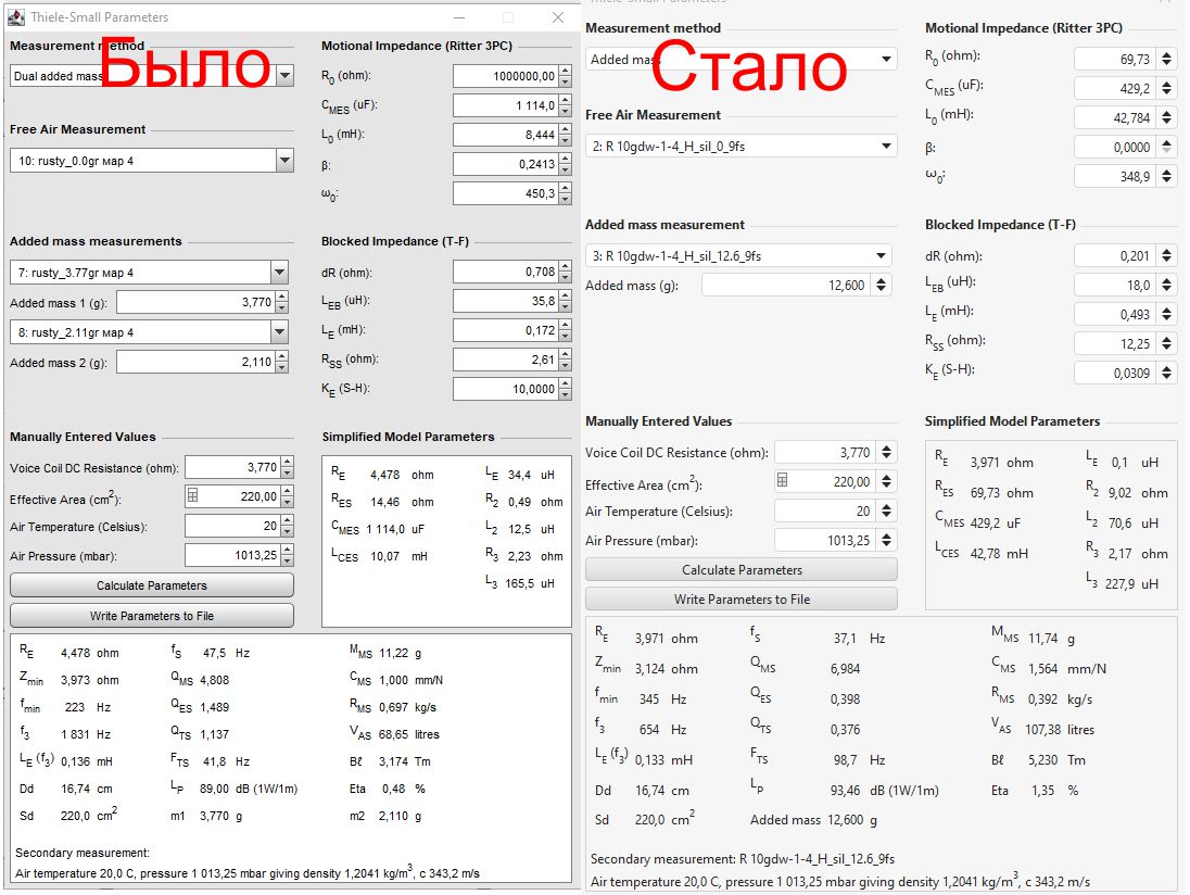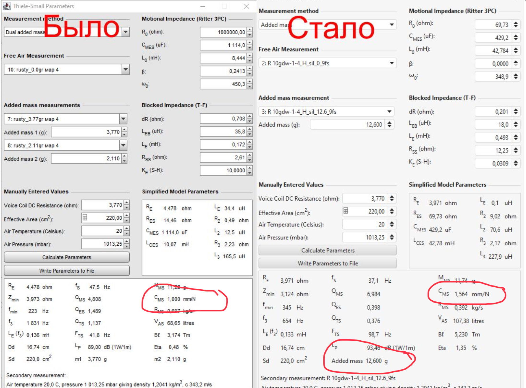Картинка с красным было/стало это замеры параметров TS динамика 10ГДШ-1-4 программой REW.