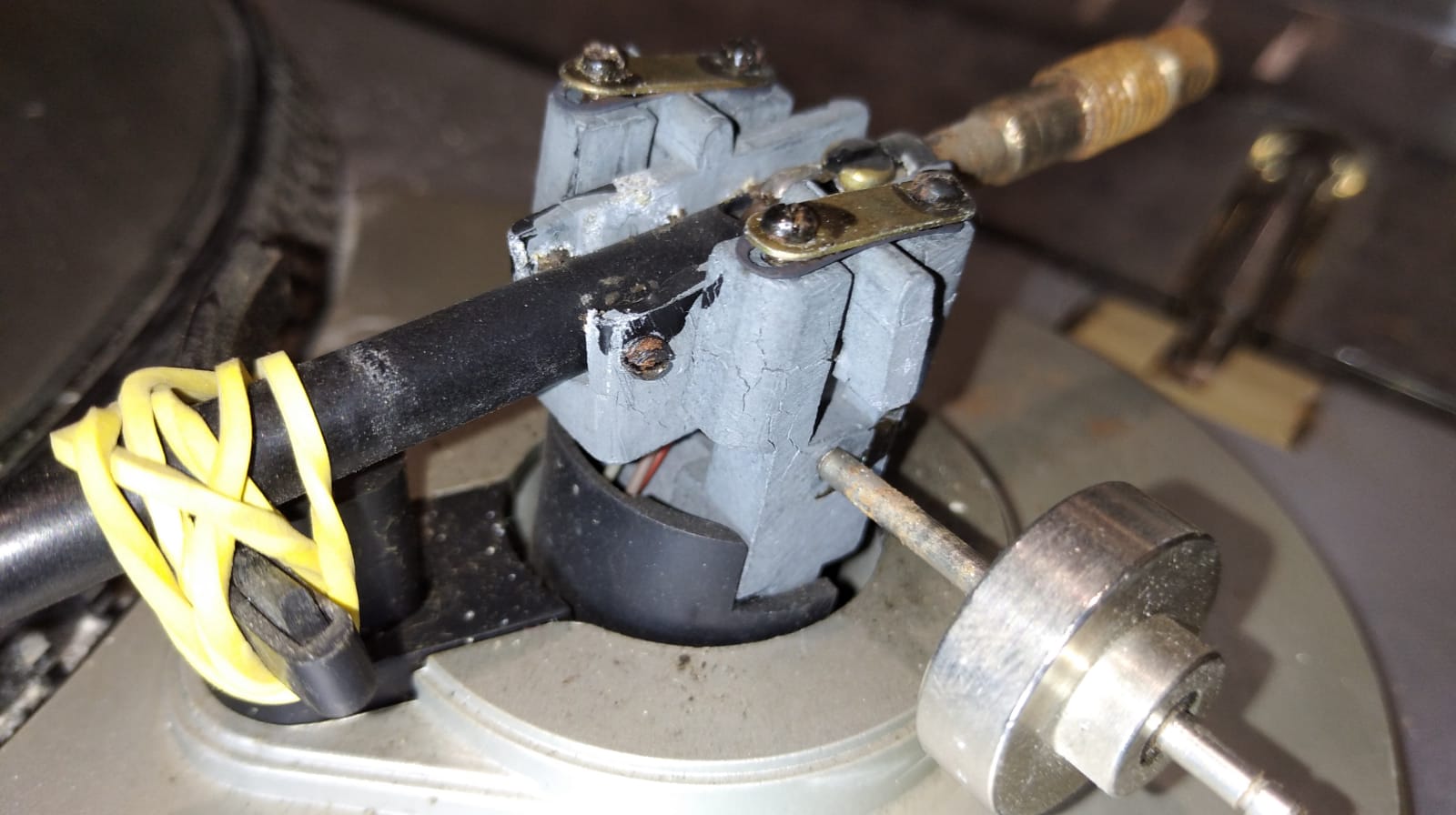 Заходил летом к другу на студию и посмотрел на Арию-102, которой несколько лет назад делал профилактику. Тогда я был в шоке просто от устройства тонарма, и упустил этот момент. Хорошо, что я поставил туда простую AT3600.