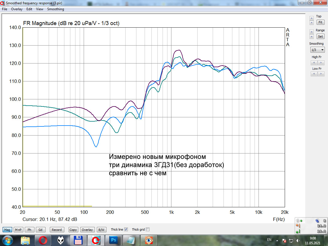 Здесь динамик был в руках и специально подальше ото всего, а микрофон довольно длинный, и тем не менее, АЧХ получилась ужасная. Микрофон лучше или на вытянутой руке держать, или на штативе и не прямо у стены. Зажимал микрофон грузом на столе, тоже криво получается - стол неплохо отражает.