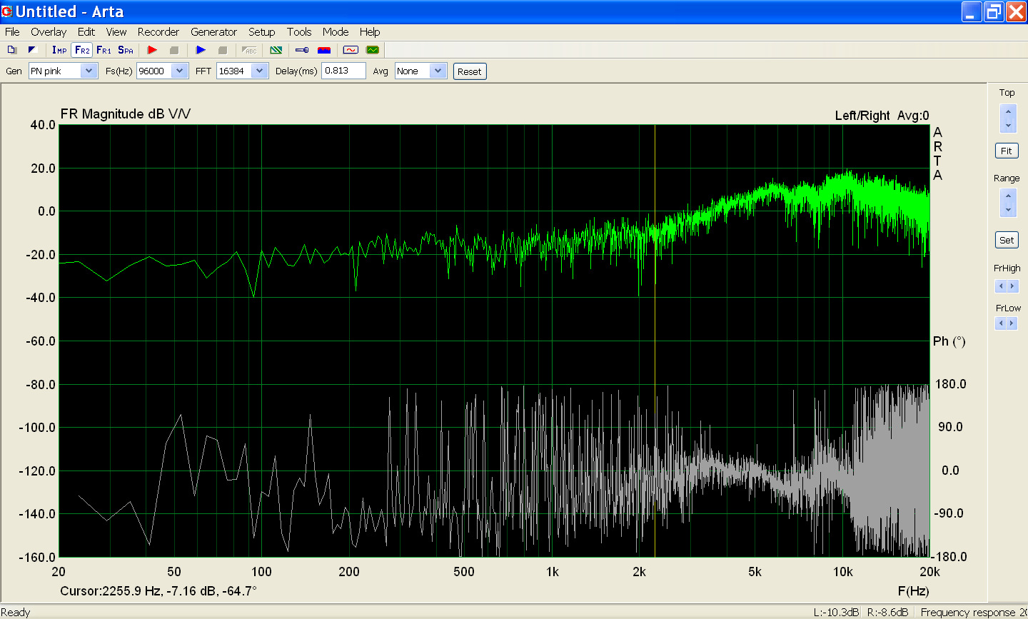 Не могу измерять АЧХ и ФЧХ в двухканальном режиме (режим реального времени) с внешней аудиокарты, выдает вот такую чушь: