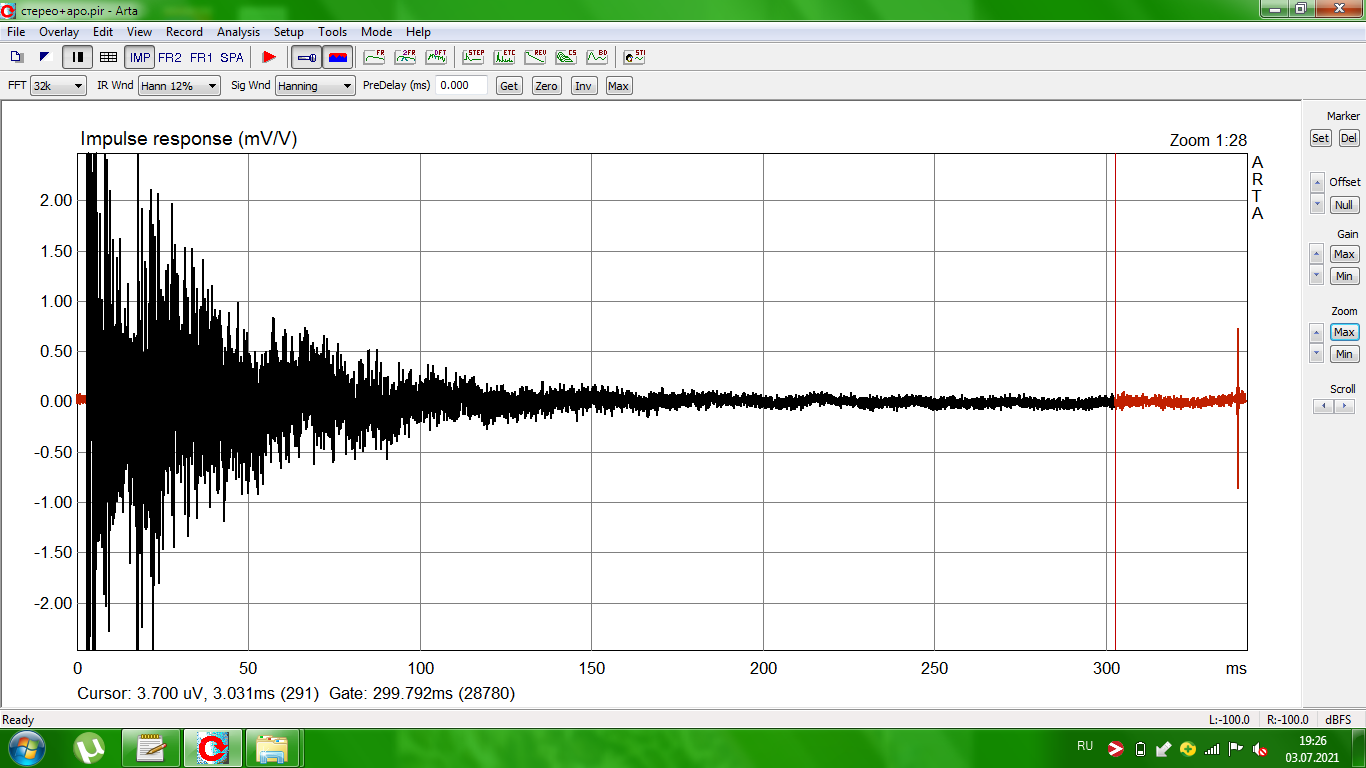 Вот результаты игры с окном. Окна были 300, 150, 75 и 40 мс. Вот импульс. Прикиньте, где эти 150, 75 и 40 мс, а 300 - маркер стоит.