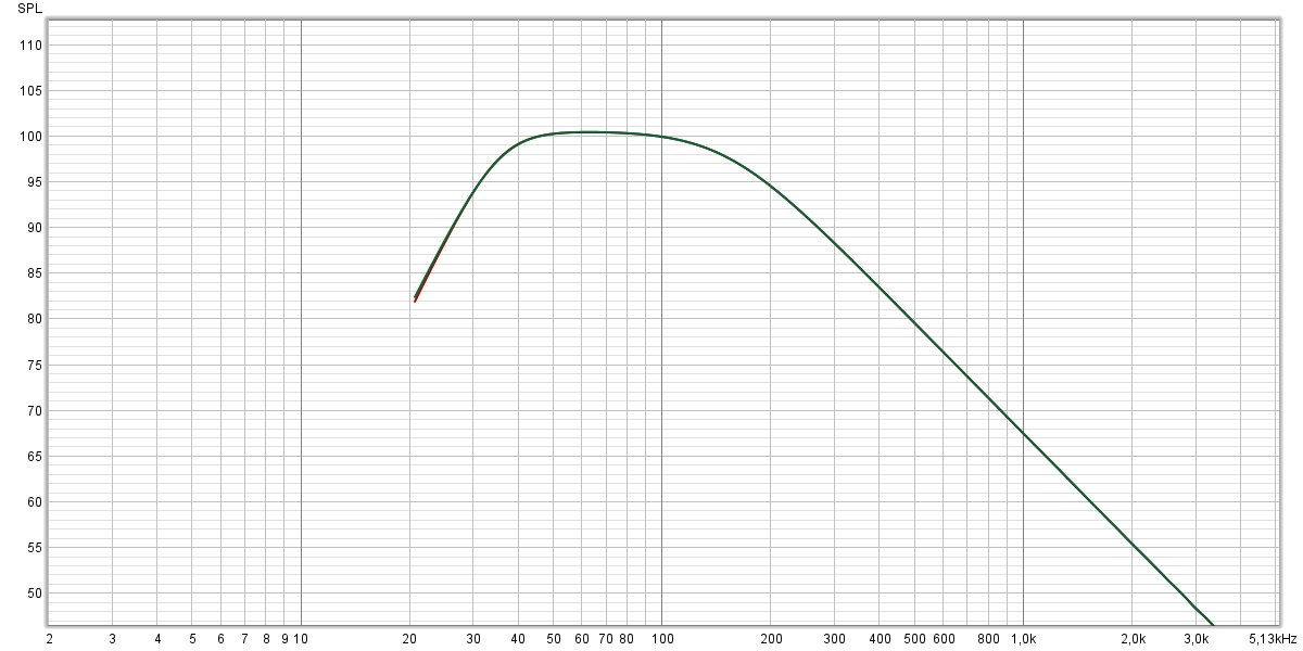 АЧХ -типовая перда на 100Гц с обвалом по краям вместо красивой полки. Родовой признак утюга с могучим мотором и тяжеленной подвигой. Сабовый утюг так и выглядит на реальном замере.