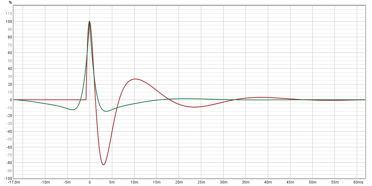 Красные импульс это IIR фильтр, он эмитирует пассивные фильтры. зеленый это FIR фильтр, тут уже сложная математика.