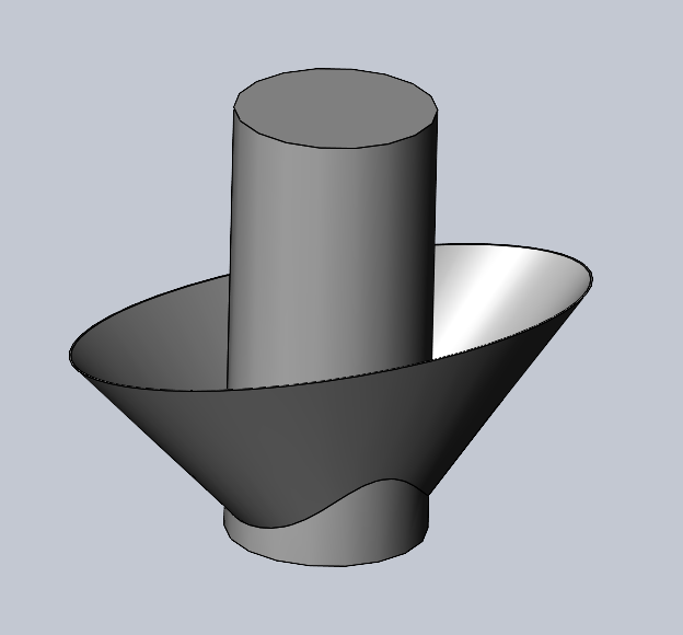Да ладно? результатом пересечения двух фигур будет эллипс. выгнуть этот эллипс прямо на диффузоре из тонкой проволоки, потом приложить её к донышку, обвести фломастером и отрезать по линии ножницами?