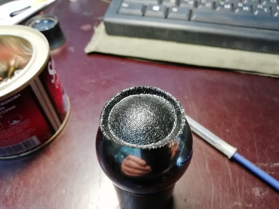 Укладываем колпачок и где тонкой отвёрткой, где жёсткой кисточкой удаляем мазюку до возможной чистоты поверхности