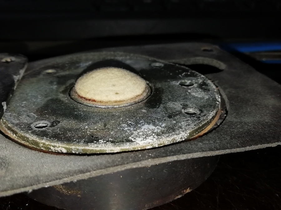 На фото, левая 6ГДВ-2 без колпачка. Пытался разглядеть в лупу на предмет присутствия чего-либо в зазоре. Абсолютно пусто. Пищалка не вскрывалась. У меня их было 10 штук. Привозили на заказ. Я тогда собирался делать акустику по А. Голунчикову. Покупал эти ВЧ для четырёх-секционного рупора...