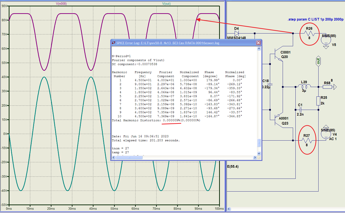 В таких симуляциях, лучше не пожалеть время и источник энергии ( и что можно прикинуть на пальцах) сделать более приближенный к реальности. Хотя бы представив его схемой замещения трансформатора и пассивные компоненты сделать с паразитными факторами. Тоже не фонтан, многое будет за бортом вычислений, многое вызовет споры, но.....ближе к факт. результату. Симулятор это симулятор, но облегчать ему вычисление себе вредить. Сам попадался на этом и на днях. Часто блохи в железе вырастают в крокодилов, что доказывает правильность замечания, что ад кроется в деталях.
