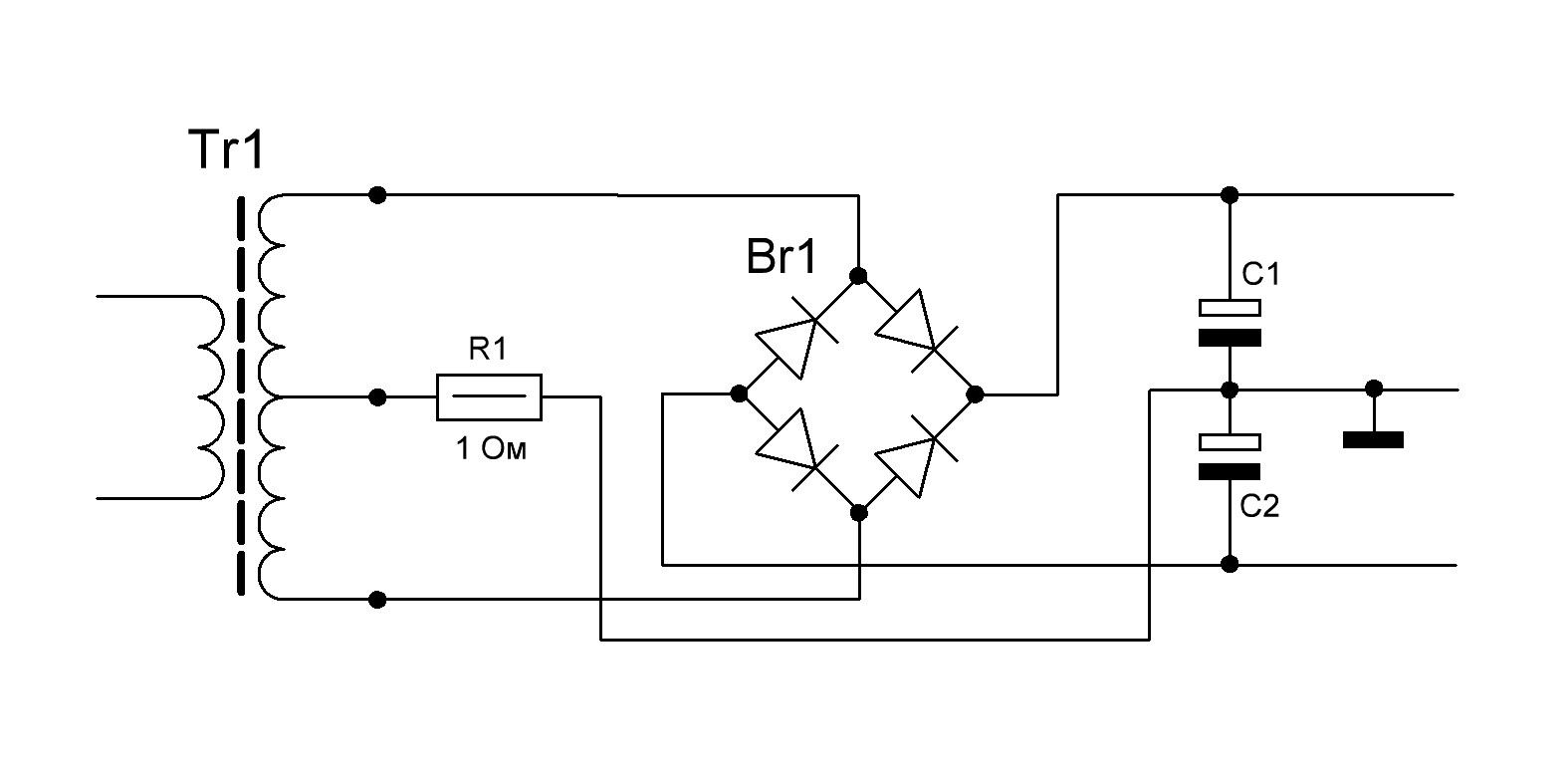 Во многих усилителях можно встретить резистор, а то и пару встречно-параллельных диодов, находящуюся между центральным отводом вторичной обмотки трансформатора и средней точкой сглаживающих конденсаторов в блоке питания.