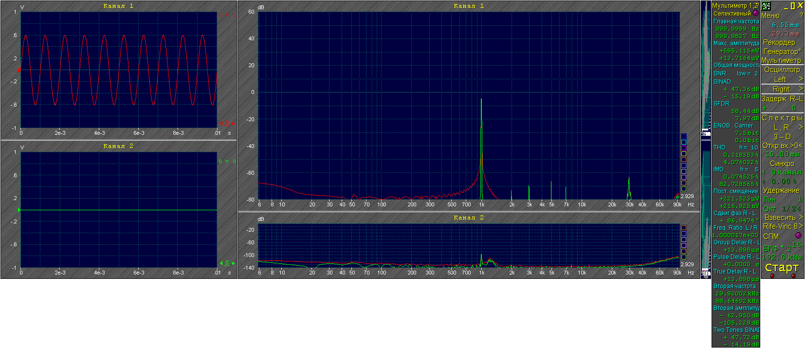 А что в том варианте замеров вылезла третья гармоника, объясняется просто: я делал фиксированные замеры, на 150ма, 200ма, 300ма, 400ма и 500ма – просто так получилось, ещё только учился. Для меня было главным то, что из 7-9 гармоник осталось только две. А тут дело такое – на 100ма 4-5 гармоник на уровне 60-70dB, а чуть подкрутил ток покоя до 140ма – они упали до -70 dB, покрутил дальше до 150ма(!), а гармоники снова поползли вверх. (В этом усилителе я оставил пока ток покоя 140ма, см. Фото.) И такая свистопляска идёт и дальше. Поэтому речь и идёт об оптимуме, ну, это для тех, кто уже это прошёл. Спасибо, Святослав.