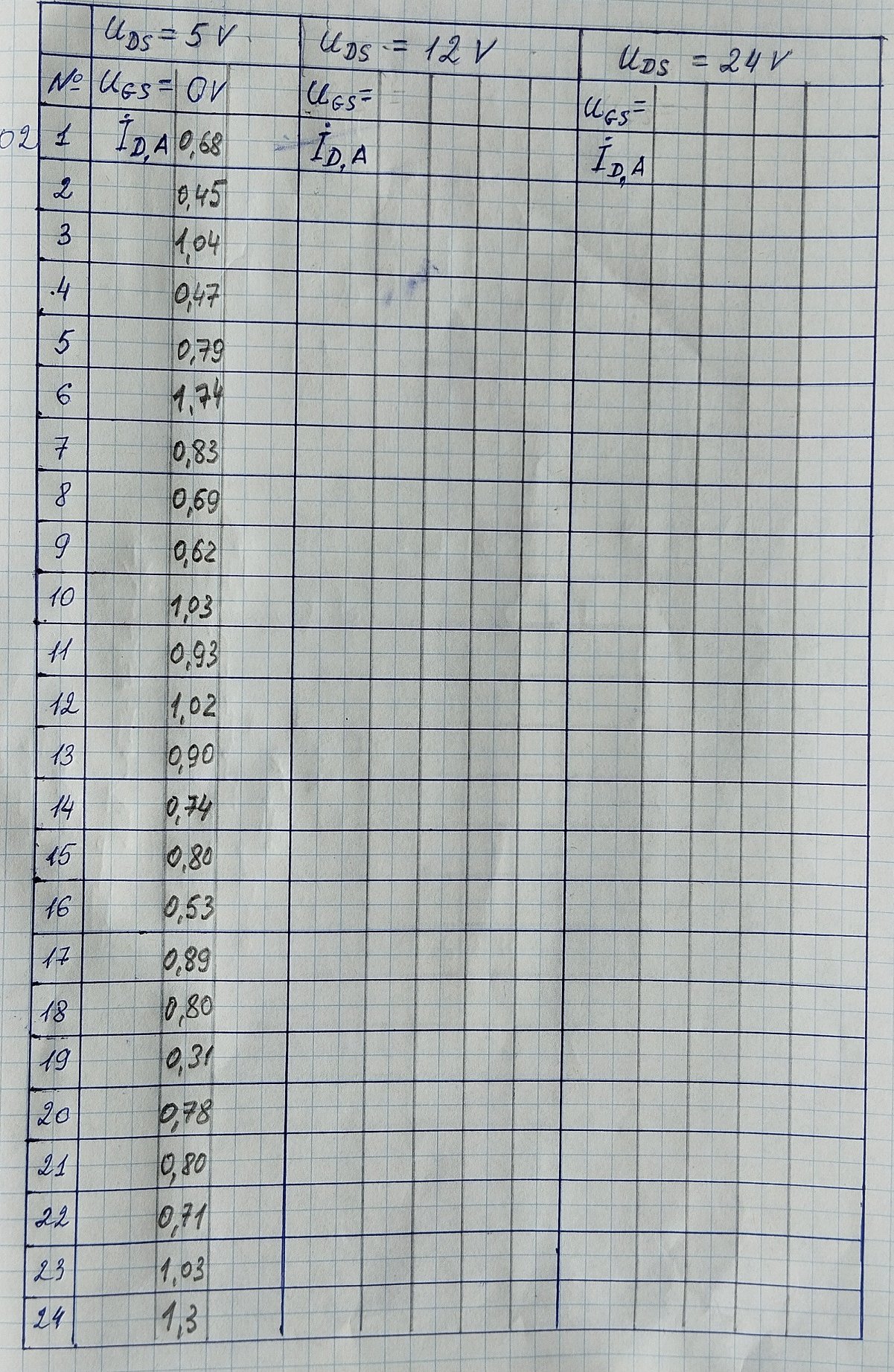 Як і раніше, на кожний транзистор робиться графік індивідуальної ВАХ, частина даних заноситься з лабораторного журналу в таблицю. Таблицею легше зводити в пари, чи квартети, аніж оперуючи купою листів графіків ВАХ.