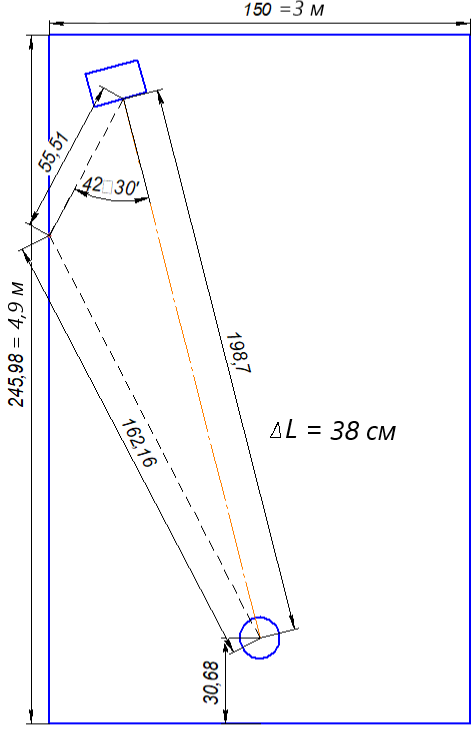 Лучший вариант, когда АС стоЯт под длинной стеной, хотя он уже не сильно отличается от последнего рисунка: так же стены не влияют на положение центра ЗО и так же требуется широкая ДН АС (или боковые АС).