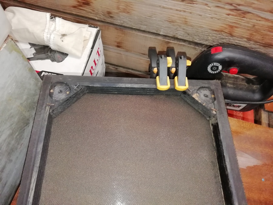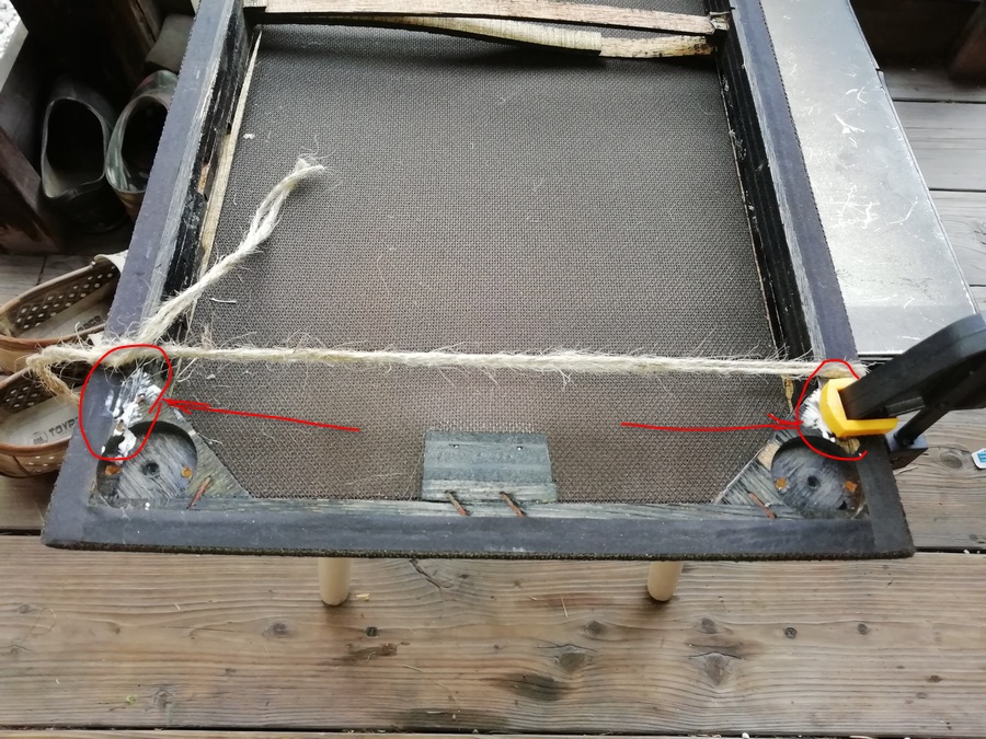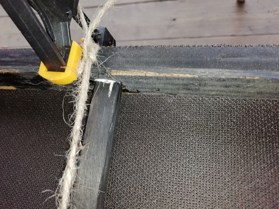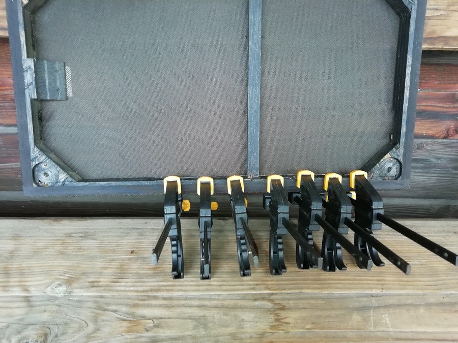 Потихоньку, помаленьку, а дело движется. Подклеишь в одном месте, появляется хлябь в другом. У одного из грилей пришлось подклеивать уголки куда никакой струбциной, что у меня под руками, не подлезешь. Поэтому просто обычной бечёвкой.