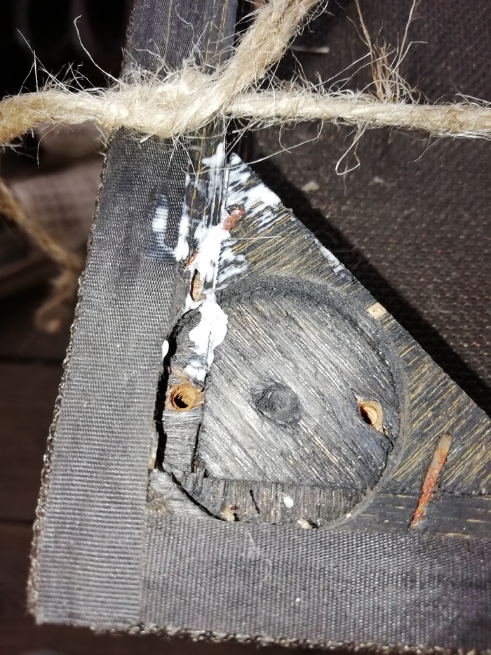 Вклеил её стянув так же в этом месте бечевой до необходимой ширины.