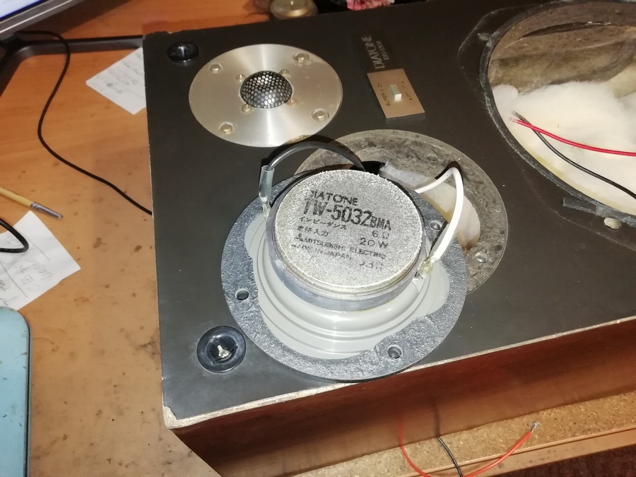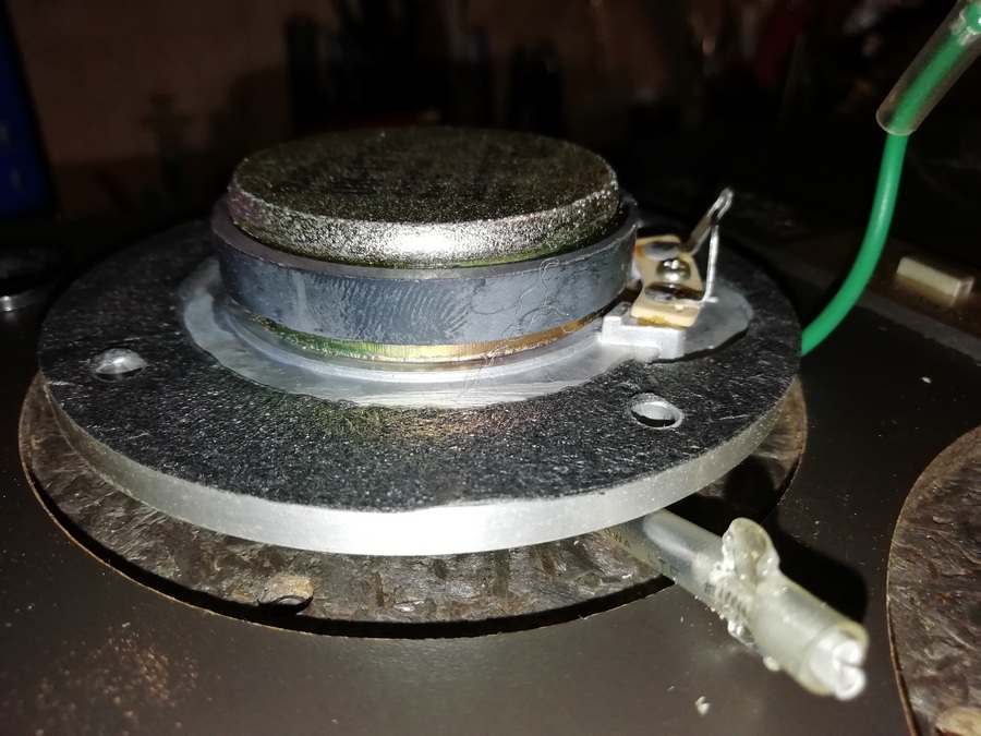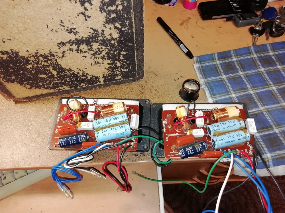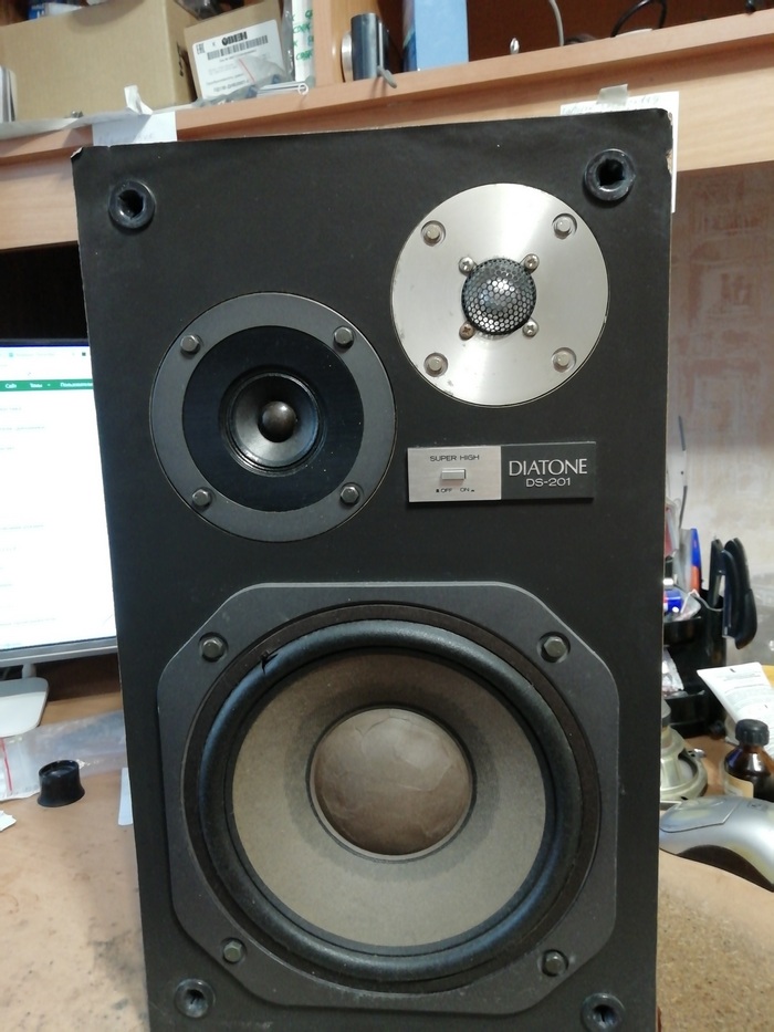 Обе АС помимо мультиметра протыканы батарейкой. НЧ и ВЧ отзываются, супертвиттер молчит. Его кнопка управления