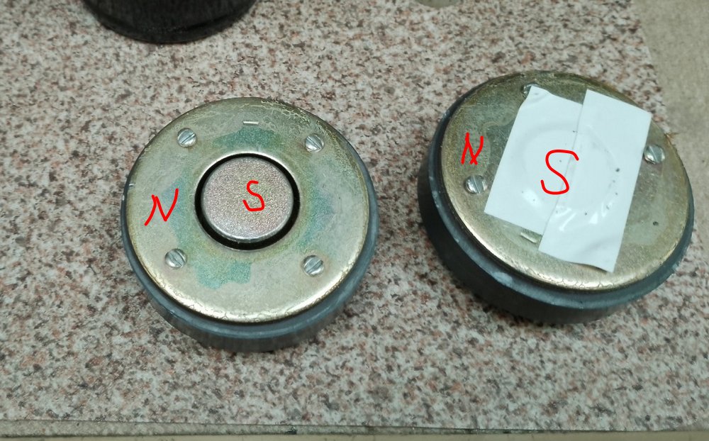 Сбоку притягиваются ели одна мс смотрит вниз другая вверх. В общем не важно, хочу знать когда магнитная индукция увеличивается - когда на отталкивание приклеивается кольцо или на притяжение? На притяжение пробовал как-то - прилеплял кольцо повторно прогонял измерение ТС - как-то вроде и не менялось. Потом где-то видел информацию о том, что такое будет работать только если магнитная цепь нижнего кольца тоже замкнута дополнительным железным стаканом крепящимся к верхнему фланцу мс... в этом плане каша в голове