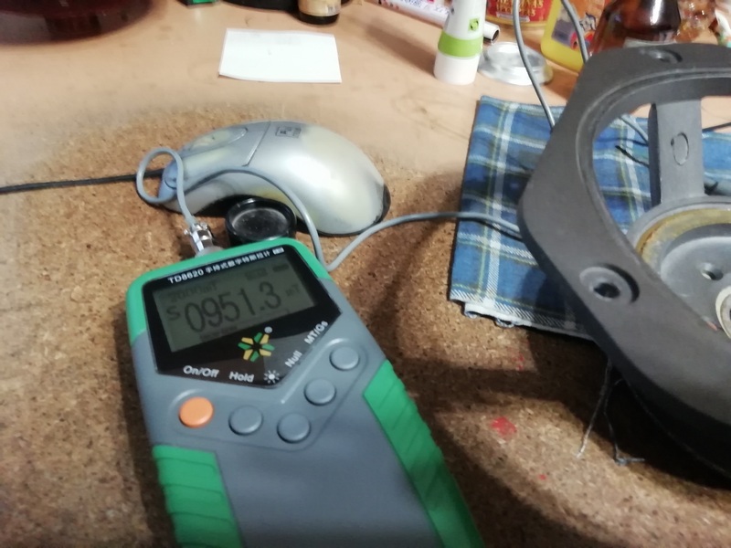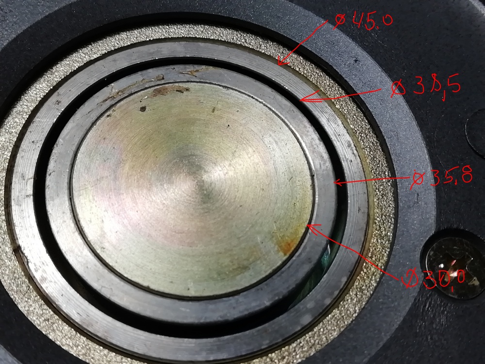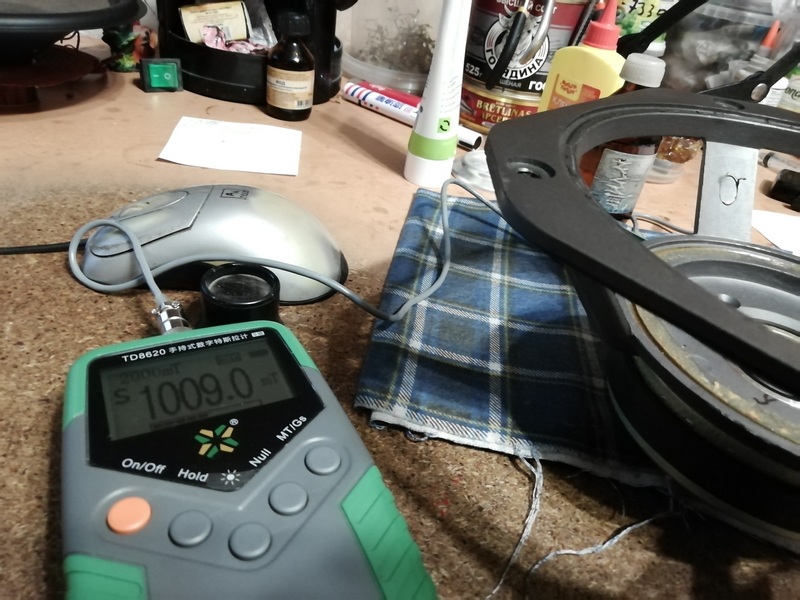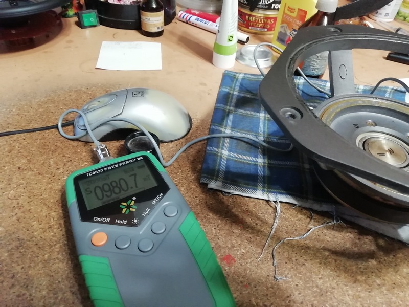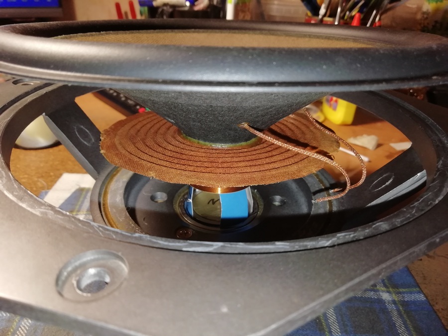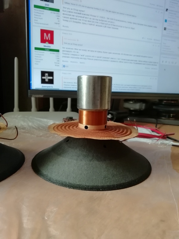 Так как подвес предполагалось приклеивать точно так же как прежний, факт пропитки немаловажен. После высыхания была сделан прикидка по положению подвесов и подвижки относительно корзины и МС. Верхнее расположение подвеса над диффузором, утапливало подвижку вниз к МС (прогиб ЦШ). Нижнее расположение подвеса под диффузором, показывало идеальное положение подвижки.