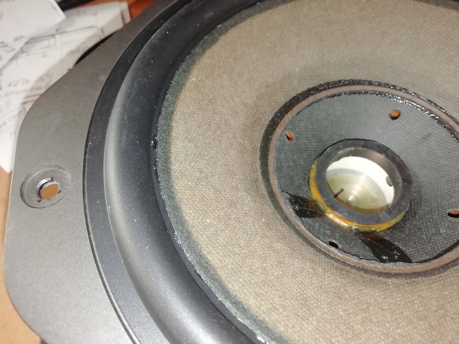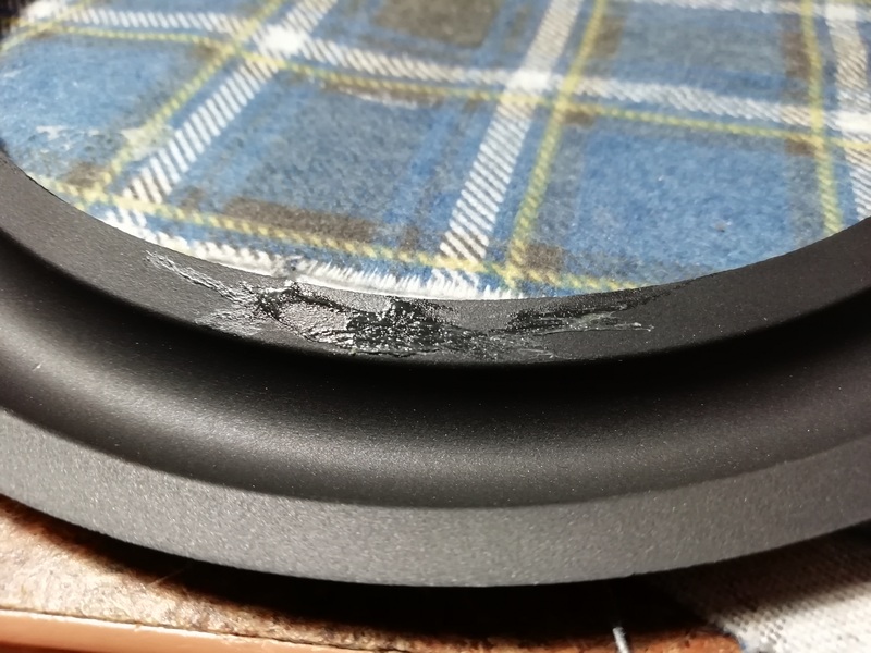 Наружная, лицевая кромка, диффузоров была пропитана-промазана клеем ПВА