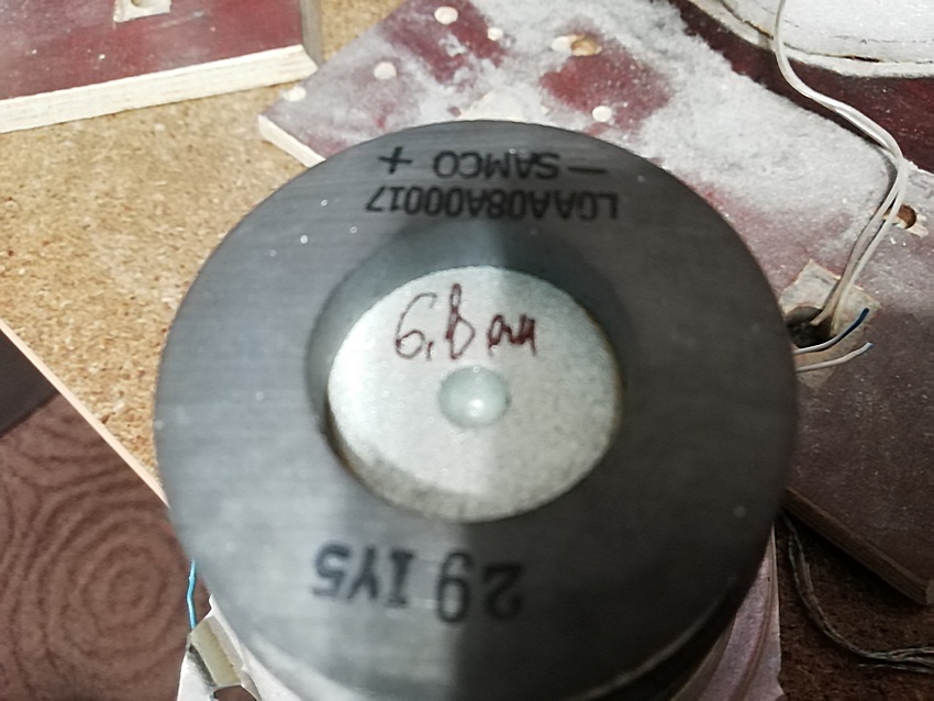 Есть интуитивное предположение, что в "колпаке на 0,4 литра, с последовательно включенным с головкой R=3.2....3.8 ом при её четырёх омах, все должно сложиться. И с Тошибой (Аурекс) 8" и с самоделкой по образу и подобию СВЧ от Диатон.