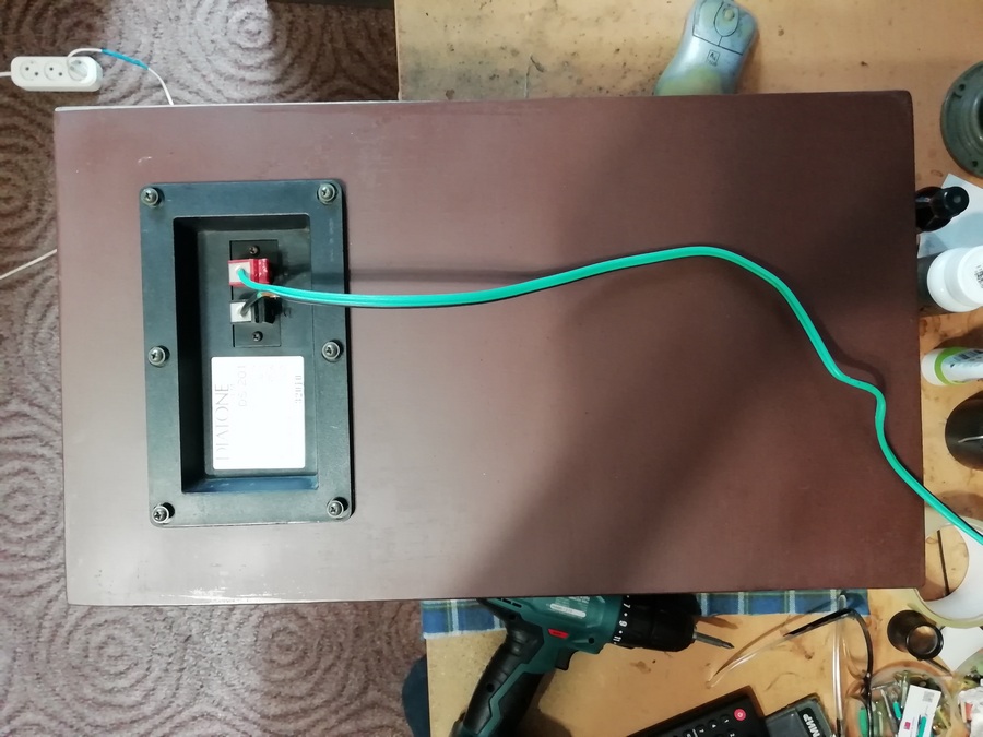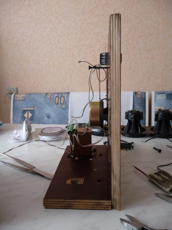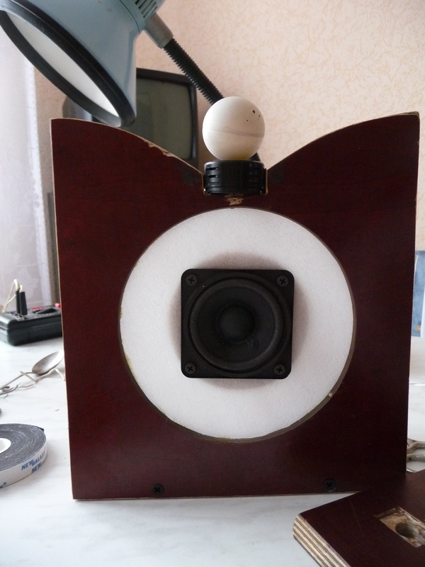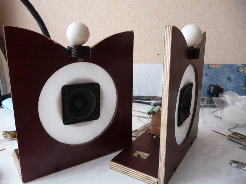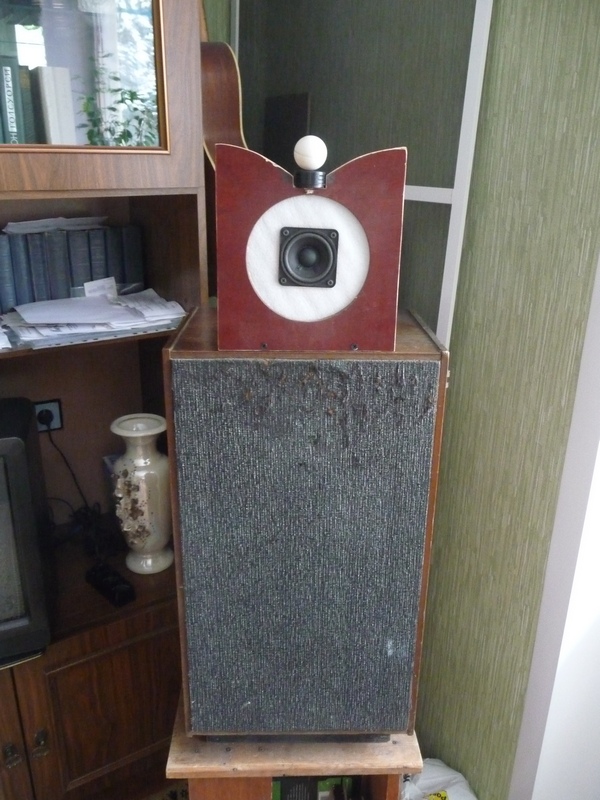 Надеюсь, что инженерное решение о размерах фронтальной панели и расположении динамиков на ней окажется лучшим, чем моё, дилетанское, "Г-образное", временное решение расположения динамиков.